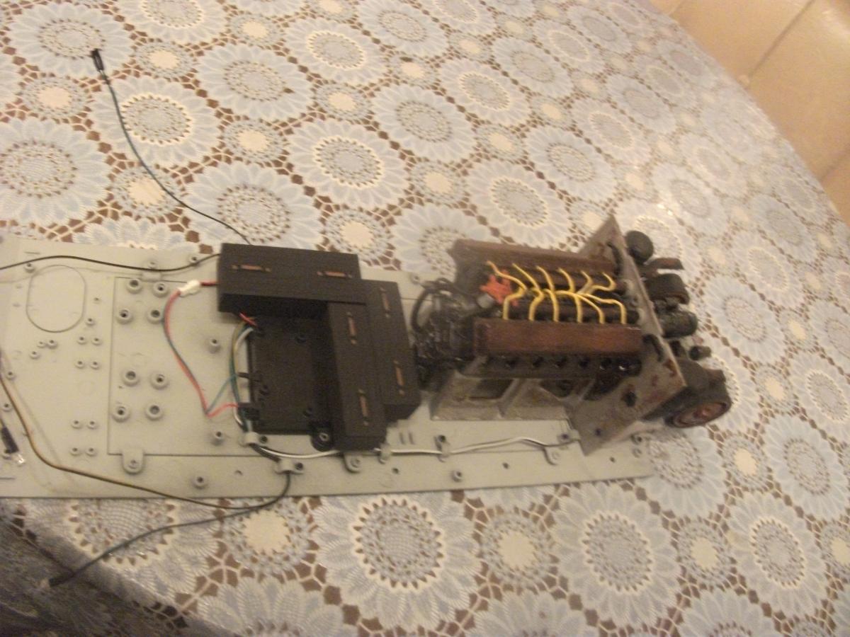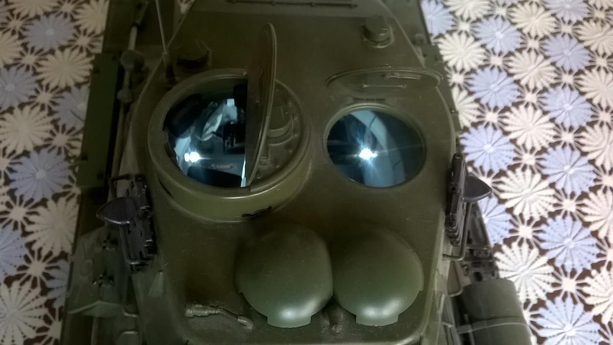 доработка брезент с ремнями, покраска моторного отсека с трансмиссией и коробкой предать, также покрашен боекомплект. Добавлены с левого борта держатели для грунт зацепов. Для фар имитация проводки и ревуна. По журналу задний броне лист не откидывается,а сделал откидывающемся. Корпус был изначально покрашен в зелёный цвет.