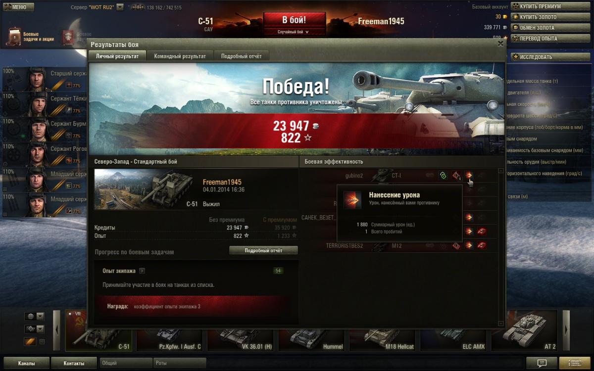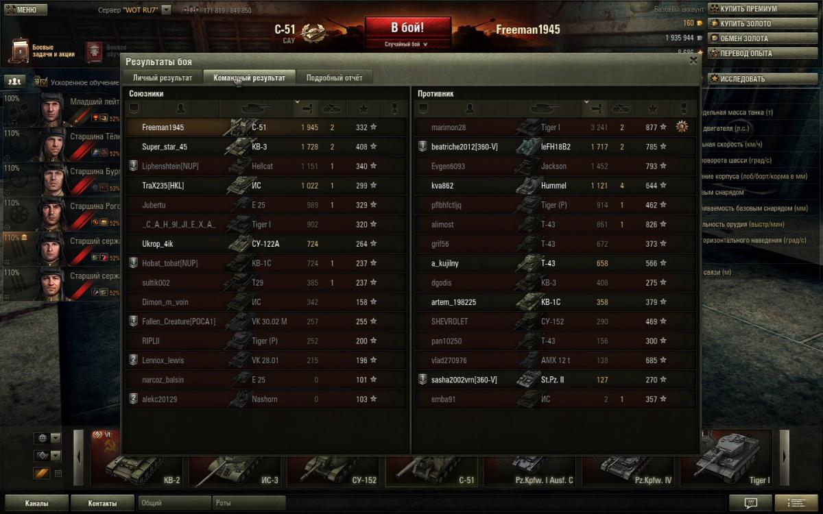 Продал С 51 и гриля из-за некачественного сведения и высокого разброса при попадании. Гриль у меня был прокачан, но попадал редко, а С 51 -не прокачан - и попадал очень редко. Хотя на арте всегда наносил максимум урона. Вообще удивляюсь на разработчиков - зачем портить артиллерию новыми патчами? Я понимаю, что обидно когда твоего Иса3 одним попадаем уничтожает топовый С 51 (так было где-то год назад, до выхода патчей), но все же.