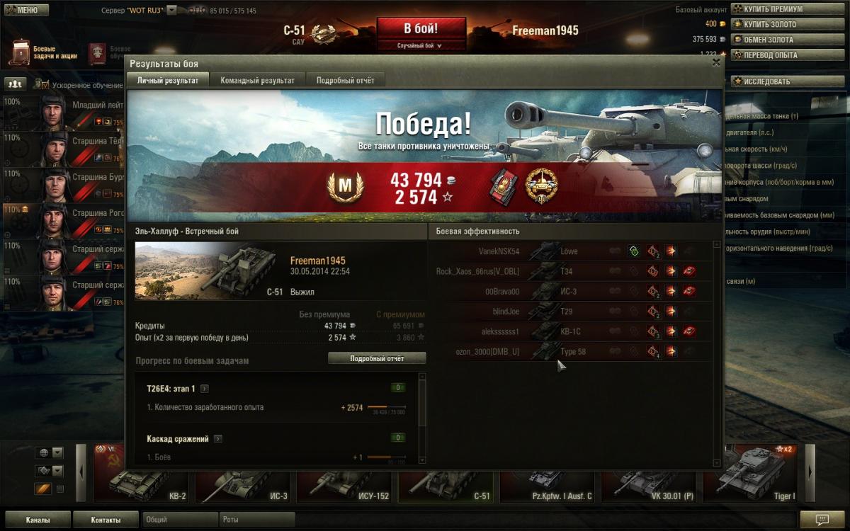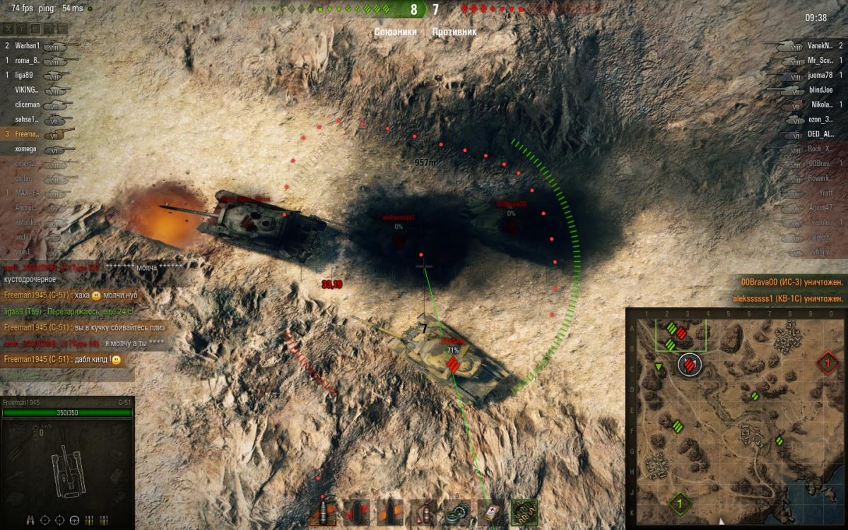 Да уж, зато у су 14-2 такой же почти ствол, судя по описанию и поэтому число приятных глазу ваншотов резко снижается.Я и на С 51 почти всегда попадаю в движущуюся на полной скорости Хелку или Елку.. и почему ? Включаю голову,провожу расчет траектории, скорость и время подлета снаряда, расстояние до цели ... и бью на опережение. Часто бывает когда цель уже исчезла и ее невидимкой настигает мой снаряд.:) Он же не затормозил во-время, сам виноват. :)