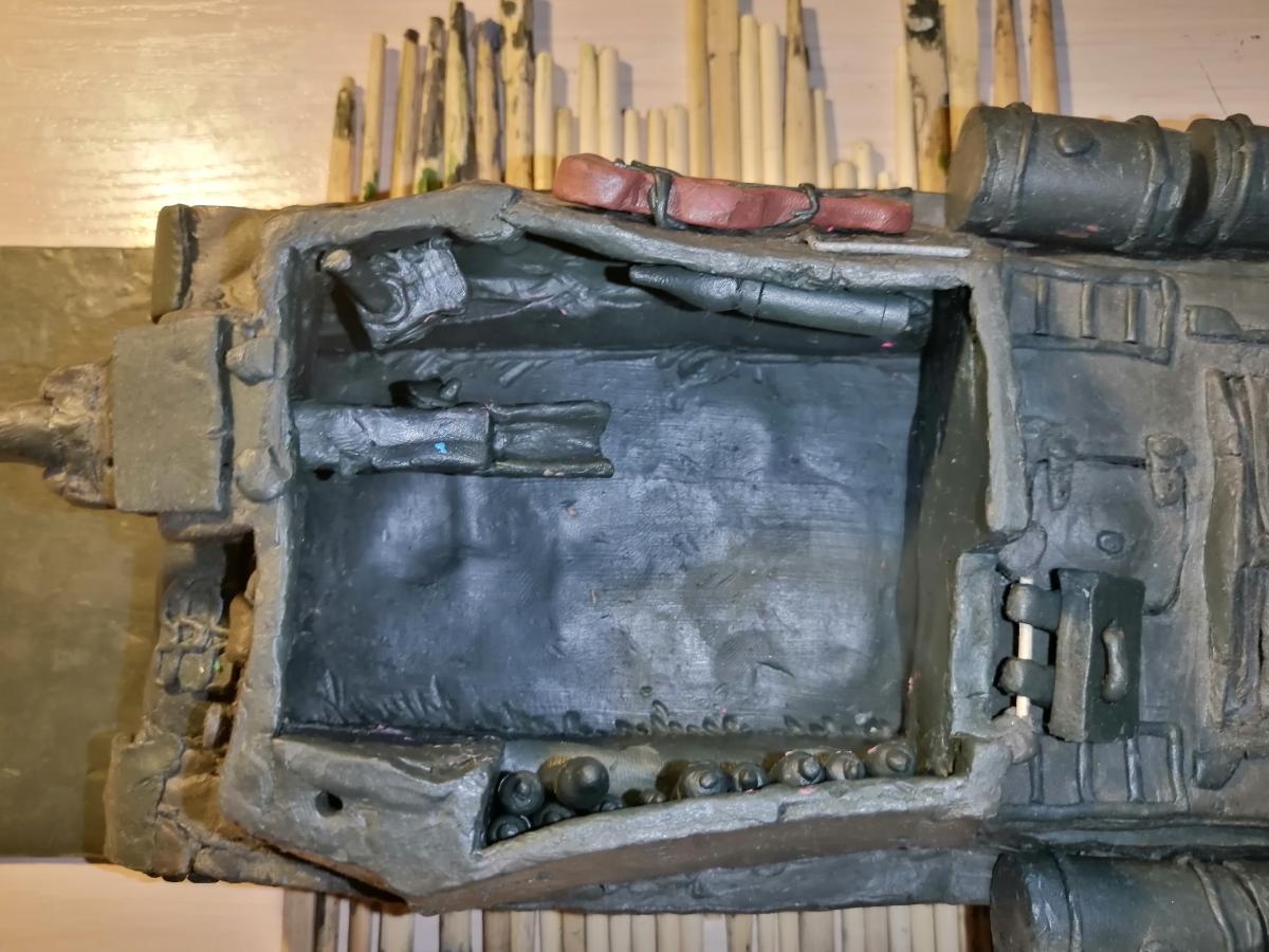Слепил из скульптурного пластилина ИСУ-152. Лепил примерно месяц, потом отложил на год т.к. закончилась проволока нужного размера. Проволокой я закрепил катки гусениц.Все люки, кроме МТО открываются. Подумывал, может сделать экипаж, но не придумал какой. http://cdn-frm-eu.wargaming.net/wot/ru/uploads/monthly_09_2020/post-71299685-0-17555700-1599161701_thumb.jpg http://cdn-frm-eu.wargaming.net/wot/ru/uploads/monthly_09_2020/post-71299685-0-12263000-1599161714_thumb.jpg http://cdn-frm-eu.wargaming.net/wot/ru/uploads/monthly_09_2020/post-71299685-0-69643000-1599161725_thumb.jpg http://cdn-frm-eu.wargaming.net/wot/ru/uploads/monthly_09_2020/post-71299685-0-85700300-1599161738_thumb.jpg http://cdn-frm-eu.wargaming.net/wot/ru/uploads/monthly_09_2020/post-71299685-0-64323100-1599161749_thumb.jpg http://cdn-frm-eu.wargaming.net/wot/ru/uploads/monthly_09_2020/post-71299685-0-57950900-1599161764_thumb.jpg http://cdn-frm-eu.wargaming.net/wot/ru/uploads/monthly_09_2020/post-71299685-0-98726000-1599161780_thumb.jpg http://cdn-frm-eu.wargaming.net/wot/ru/uploads/monthly_09_2020/post-71299685-0-34955900-1599161797_thumb.jpg http://cdn-frm-eu.wargaming.net/wot/ru/uploads/monthly_09_2020/post-71299685-0-43624900-1599161809_thumb.jpg