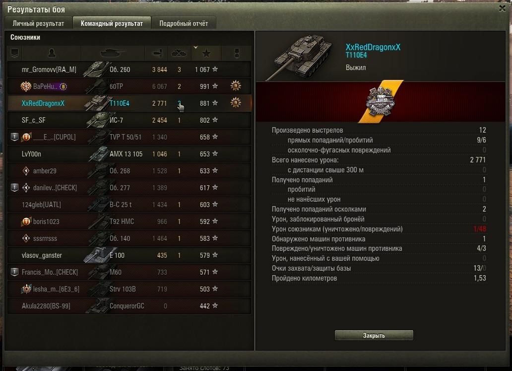 Его еще кидает к таким вот постоянно, он ниху_я не пробивает даже голдой 10-к, у меня 70% голды уходит в некуда. Но даже уроном в 1500+ я занял в боевой статистике 2 место, вот такая это Ху-ня полная.