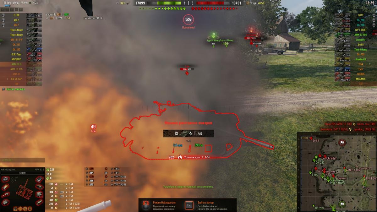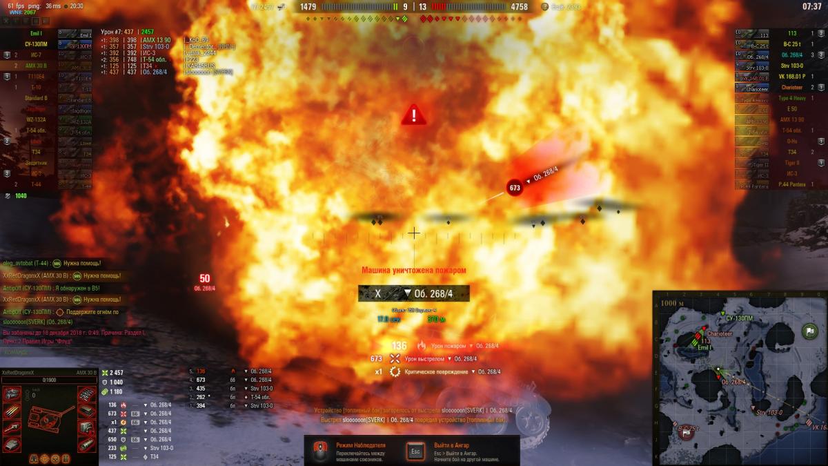 Это дерь_мо еще и сгорает постоянно. 2 скрин урон фугасами, так проходит практически всегда. Так же стоит отметить как хорошо горит данный танк, почти каждый бой, причем пожар бывает 2 раза подряд. Башня крутится очень медленно, что делает трудной бой даже с 9-ми СТ, например т-54. 34% Побед на АМХ, что делает его абсолютным рекордсменом по слитию среди всех танков на которых я играл за 6 лет!(а все от того что он на 100% яв-ся командно зависимым из-за отсутствия брони и нормальной пушки, по сути некий довесок как свободные Хит поинты)https://forum-mt-prod.lesta.ru/emoticons/Smile-izmena.gif