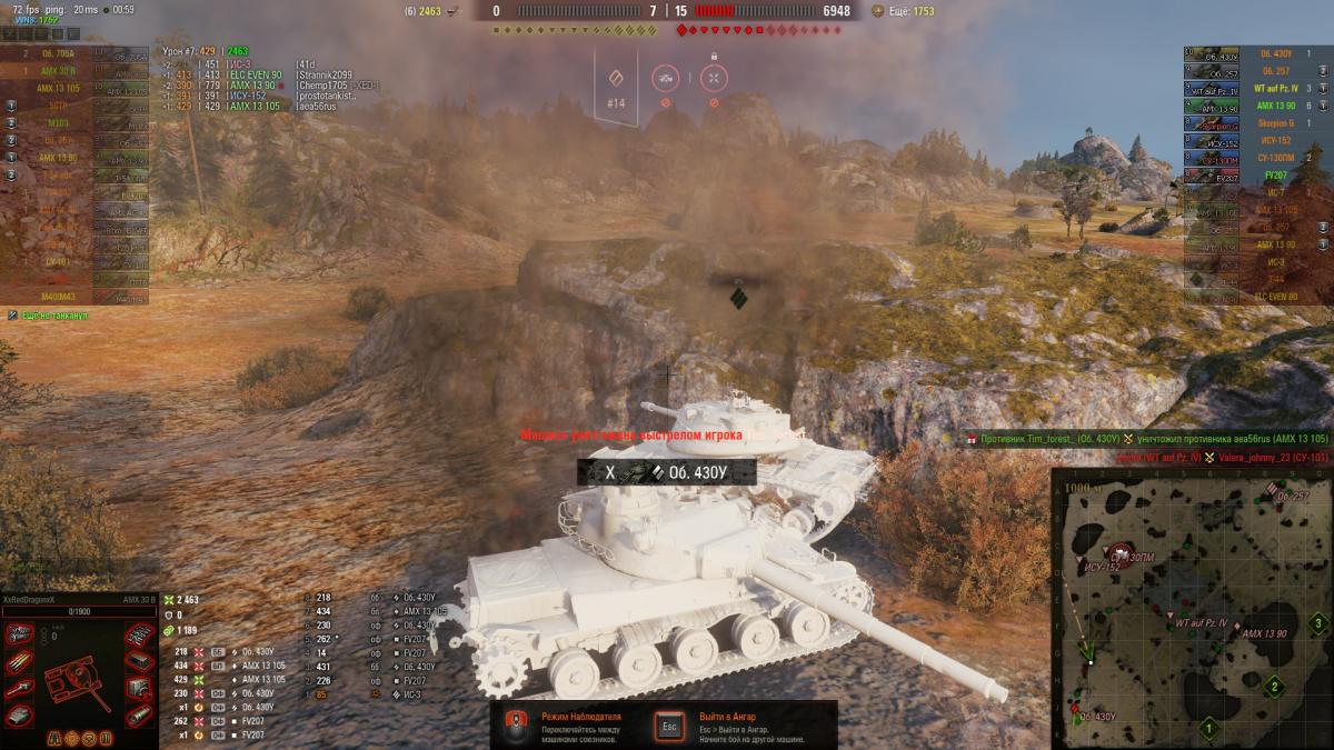 Все мои темы по поводу дисбалансировки данного танка были удалены, хотя нашли поддержку со стороны юзеров, но со стороны ВГ конечно же нет, в них обсуждалось не соответствие хар-к данного танка ко всем 10-м СТ. После как я пересел на м48, по ощущениям как из ада сразу в рай, набивал от 3-6+к урона каждый бой, только первая линия, за 6-7 боев 2 раза подряд взял мастера, я хаил м48, но после АМХ 30B, это небо и Земля.