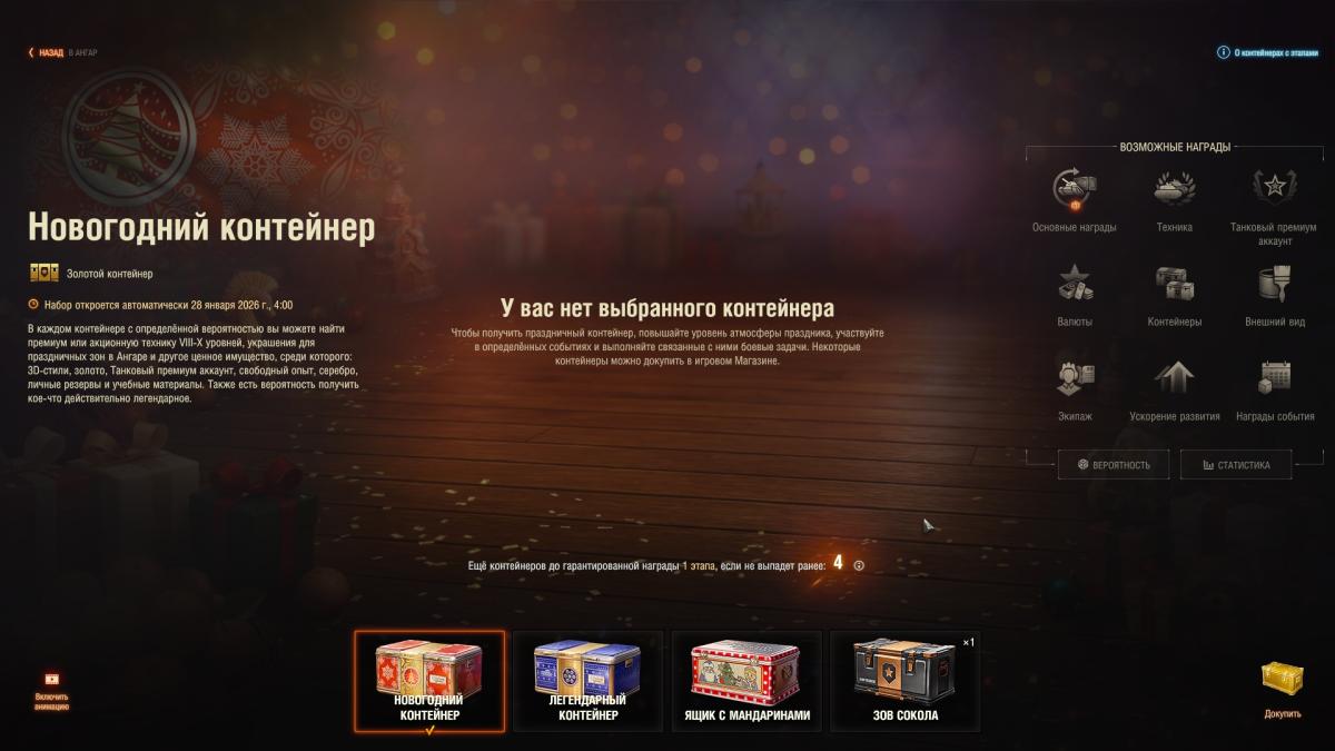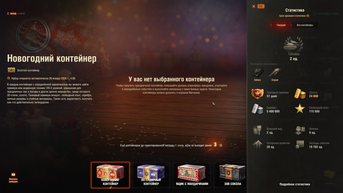 Очень "Щедрый" в этот раз новый год за 31 контейнер, не выпало ни одного танка, ни одного стиля, по минималке голда в основном 200-300 и дни према 1-3 дня и остальной мусор. Процент выпадения порезали ВХЛАМИНУ равен около нуля. В прошлом новом году за 30 контейнеров выпал: Прожетта 6, Vz тяж 9 ур., двустволка, и 3 стиля. Вообщем хватит с вас 10 контейнеров за реал. Добью голдой гарант, кстати "Птичьи контейнеры" вообще жир еще 25 до гаранта осталось видимо там тот же процент что и тут. Новогоднее настроение от танков испорчено. Считай так за голду и реал купил 1 мусорный танк из первого набора, и скорее всего это будет вторая двухстволка 100 калибра (одной же мало, будет у тебя и вторая такая же).