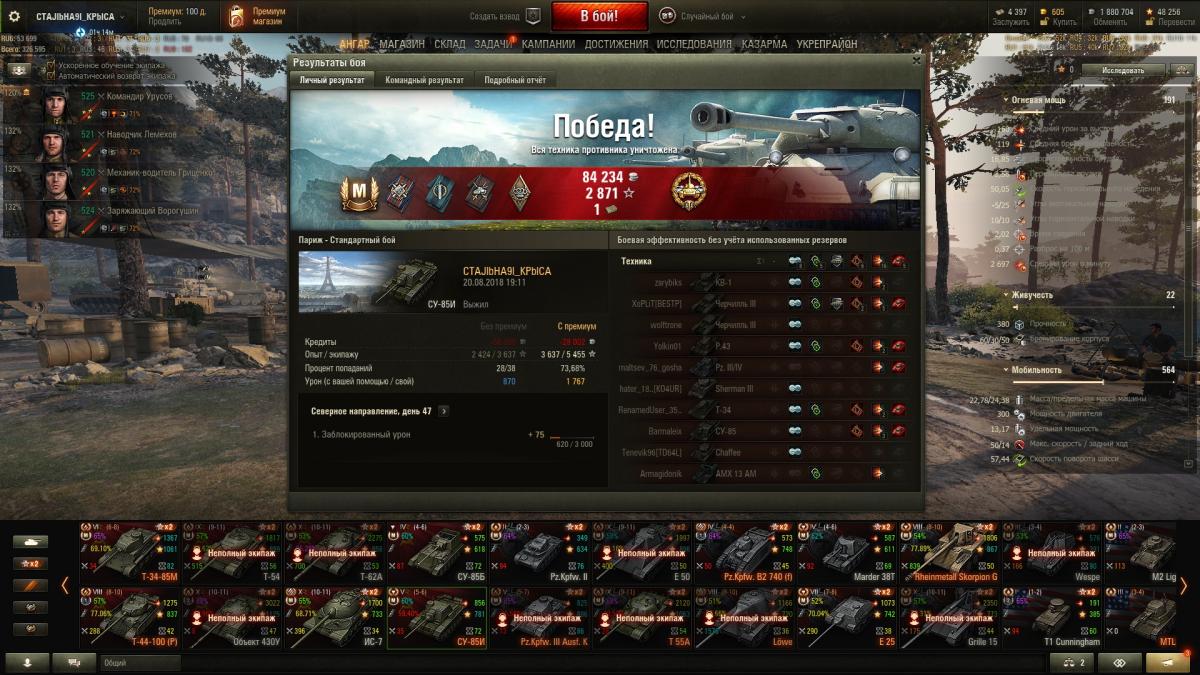 http://cdn-frm-eu.wargaming.net/4.5/style_images/wg/snapback.pngOpaTank (20 Авг 2018 - 20:08) писал: Вьі давно на сушке85 играли?Вижу,достаточно давно,картошка вам сюрприз приготовила С новьім балансировщиком,иногда,вьі будете попадать к 5 и 6 левалам,а все остальньіе бои играть против кокве и т29,стреляя той же голдой. Да,давеча бьіло много кокове-рагнарек в рандоме. Меня на большинстве танков не парит, что я не в топе, больше лвл - больше дамажки, больше опыта, но лучше стрелять по т29 и попадать/пробивать его, чем стреляешь по т150 или м4а3е8 и даже голдой или не попадаешь или без дамага. Семерок в боях будет не более трёх в самом худшем случае, в остальном баланс уровней такой же. Это раньше, когда льготы только вводились ты мог быть одной пятеркой с 14-ю семерками и льготные уровни чувствовались, а сейчас из за несчастных трёх топов (которые не всегда и есть) настолько худшие ТТХ машины, что лучше нормальный танк без льготных боев чем этот. Вот как-то так.
