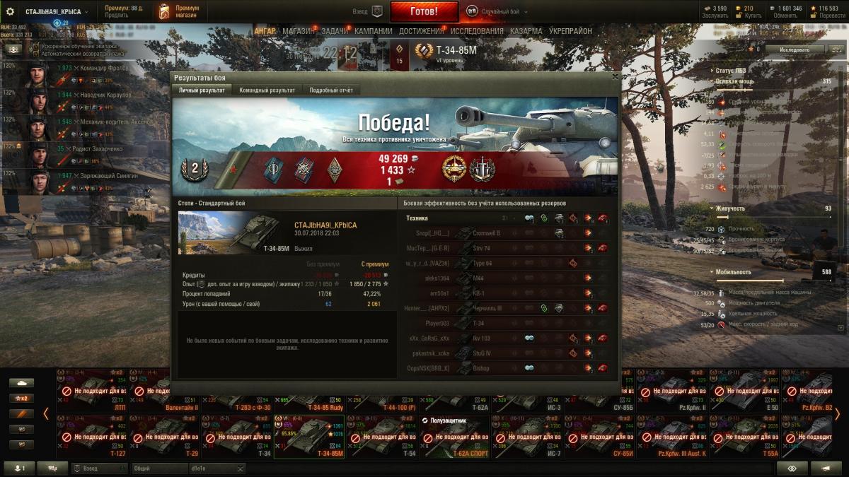 http://cdn-frm-eu.wargaming.net/4.5/style_images/wg/snapback.pngOpaTank (20 Авг 2018 - 20:08) писал: Вьі давно на сушке85 играли?Вижу,достаточно давно,картошка вам сюрприз приготовила С новьім балансировщиком,иногда,вьі будете попадать к 5 и 6 левалам,а все остальньіе бои играть против кокве и т29,стреляя той же голдой. Да,давеча бьіло много кокове-рагнарек в рандоме. Меня на большинстве танков не парит, что я не в топе, больше лвл - больше дамажки, больше опыта, но лучше стрелять по т29 и попадать/пробивать его, чем стреляешь по т150 или м4а3е8 и даже голдой или не попадаешь или без дамага. Семерок в боях будет не более трёх в самом худшем случае, в остальном баланс уровней такой же. Это раньше, когда льготы только вводились ты мог быть одной пятеркой с 14-ю семерками и льготные уровни чувствовались, а сейчас из за несчастных трёх топов (которые не всегда и есть) настолько худшие ТТХ машины, что лучше нормальный танк без льготных боев чем этот. Вот как-то так.