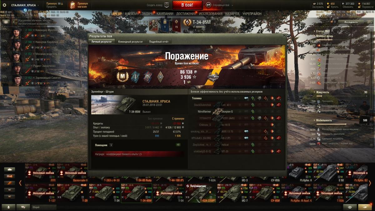 Не помню когда купил это чудо даже, без дела в ангаре болталось, думаю дай мастера хоть возьму на ней, покатался - не оч, посмотрел характеристики, во всем сильно хуже су85, хотел уже плеваться, а тут выяснилось, что у нее льготный уровень боёв)) не буду тогда плеваться, тогда ладно)