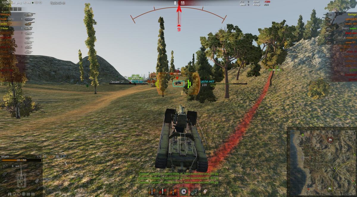 Прилагаю несколько скринов выстрела прямой наводкой в пт-режиме С-51. Не слишком ли до смешного или унылого отклонился снаряд после выстрела? Дистанция всего 65 метров, а снаряд, с недолетом, рванул в сторону на пару метров. Трассер на скринах сие наглядно показывает. Понятно, что это игра, но не до такого же маразма....