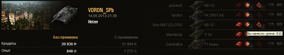 http://cdn-frm-eu.wargaming.net/wot/ru/uploads/monthly_05_2013/post-7218022-0-27752200-1368791483_thumb.png Люблю Хетцера за возможность 1-на-1 в ближнем бою разобрать 100% ТТ5, а то и ТТ6. Недавно вот разобрал и того, и другого, правда мы с Т1 друг друга одновременно убили. :) Голды вожу четверть БК.