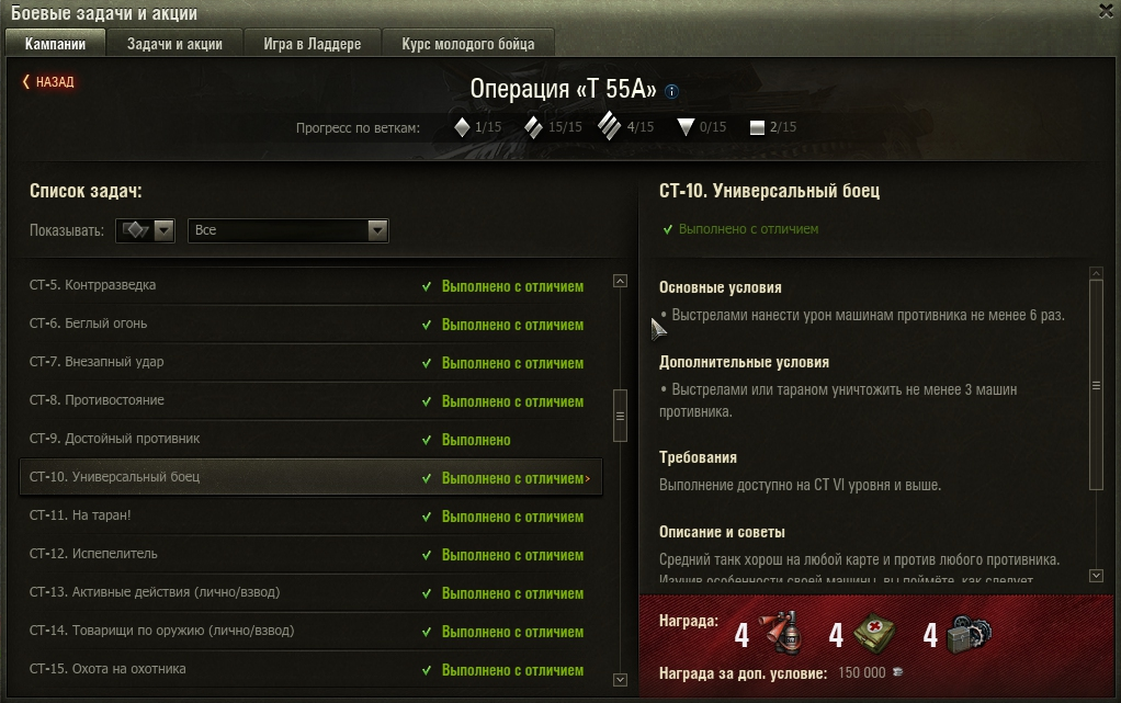 Фраги и дамаг это - барабан. Бат или шкода идеальны для выполнения всех лбз на т55, за исключением задачи на ТТ двумя уровнями выше, кстати и ее сделал на барабанном СТ, на новом шеведе. Не соврать закрыл все СТ задачи за 3 дня активной игры. http://cdn-frm-eu.wargaming.net/wot/ru/uploads/monthly_10_2016/post-72402779-0-74109800-1477694048_thumb.png