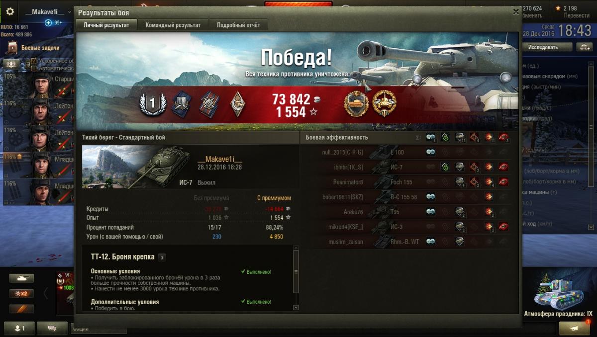 Делал ТТ-12, а хватило на ТТ-15) Ис7 не маус конечно, танкует хуже) Зато с остальными ЛБЗ справляется намного лучше. http://cdn-frm-eu.wargaming.net/wot/ru/uploads/monthly_12_2016/post-72402779-0-64403200-1482929484_thumb.jpghttp://cdn-frm-eu.wargaming.net/wot/ru/uploads/monthly_12_2016/post-72402779-0-56690800-1482929493_thumb.jpg Реплей если кому надо) http://wotreplays.ru/site/9410506#tihiy_bereg-makave1i-is-7