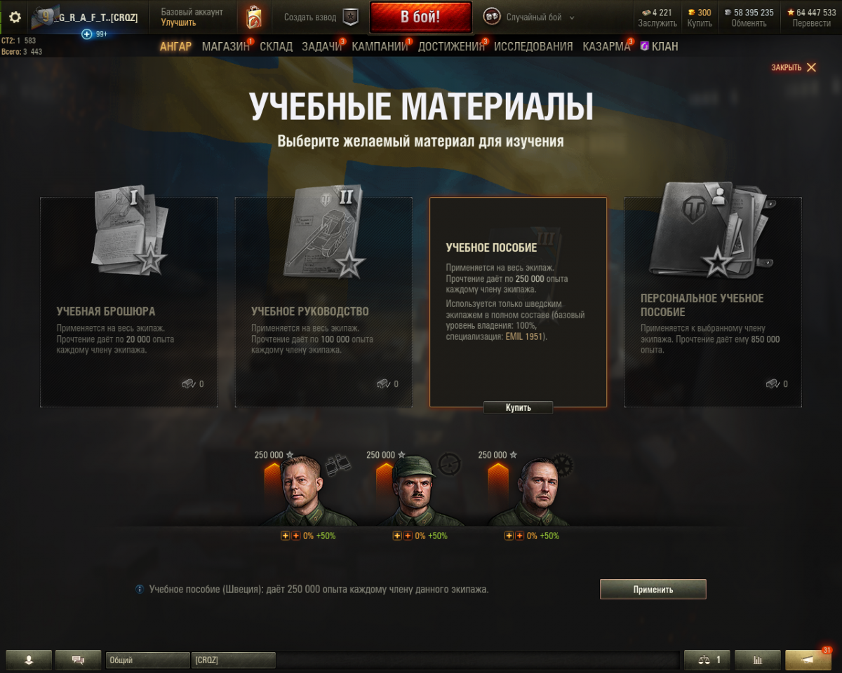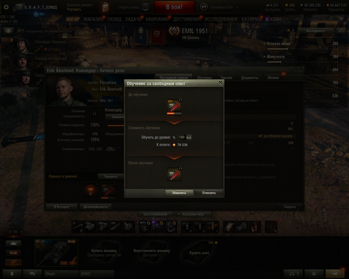 http://cdn-frm-eu.wargaming.net/4.5/style_images/wg/snapback.pngMakedonsky (23 ноя 2019 - 02:06) писал: в смысле "скапливаться опыт экипажа"? опыт и так идет в экипаж после каждого твоего боя.... и сейчас ты можешь открыть личное дело любого члена экипажа и посмотреть, сколько опыта ему осталось до следующего % http://cdn-frm-eu.wargaming.net/wot/ru/uploads/monthly_11_2019/post-38192-0-89689700-1574467445_thumb.jpg http://cdn-frm-eu.wargaming.net/wot/ru/uploads/monthly_11_2019/post-38192-0-87090000-1574467460_thumb.jpg 89% 5-го перка... видим 71к до 90% нажимаем ускорить... видим 14к свободки (14к*5=70к) че ты еще хочешь? усложнить все? Вместо этого всего, добавить пункт "Опыт экипажа" рядом с "Опыт" и пусть туда весь накопленный в боях опыт скапливается. Человек в ангаре посмотрит на эти цифры, к примеру 100 000 опыта экипажа накопилось, и скажем (вдруг надо), добавит ещё 5 000 свободного опыта (перевод свободного опыта в опыт - такое же окно) и получится 125 тысяч опыта (к примеру). Этот опыт каждый человек сможет потратить, хоть на одного командира к примеру или на одного радиста или на всех поровну. Главное, что сам будет решать сколько опыта куда, а не за него распределять система. Кому не нравится, можно нажать к примеру галочку и опыт автоматически по старой схеме будет распределять система. Весь опыт будет в одной куче и привязан к танку. Я конечно допускаю, что есть не точности и что это более тщательно надо продумывать и с коленки сразу не получится, но почему постоянно приходится додумывать вместо разработчиков? Я думаю, что нерешаемых проблем здесь нет и можно организовать так, чтобы всё работало безупречно. Есть свободный опыт, привязанный к танку. Есть экипаж. Экипаж может открывать перки только по достижению 100% всеми членами экипажа. После достижения всеми членами экипажа 100%, открываются перки и открывается Опыт экипажа или вообще сразу размещать опыт экипажа не зависимо от степени прокачки экипажа. Главное, чтобы этот опыт экипажа был привязан к танку и его можно было использовать, если экипаж сидит в этом танке. Всё.