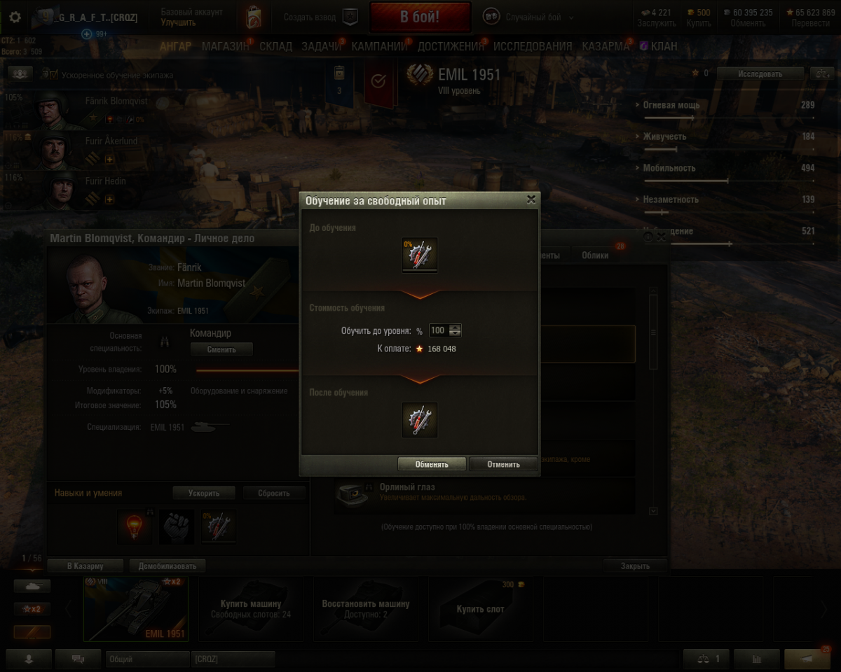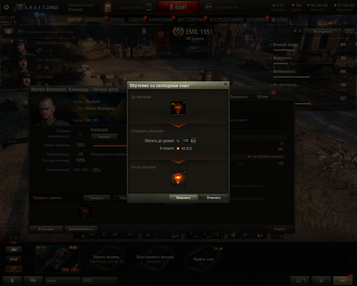 http://cdn-frm-eu.wargaming.net/4.5/style_images/wg/snapback.pngMakedonsky (23 ноя 2019 - 01:50) писал: лол тем что так было всегда свободка переводится в экипаж 1 к 5, во время акций 1 к 10 за свободку ты обучаешь 1 члена экипажа, учебным материалом - весь экипаж... например в маусе - 6 человек сидят свободку гооооораздо тяжелее фармить, чем простой опыт, поэтому она и копится медленнее, и ценится выше... даже во время акций х10 ооочень мало кто пользуется таким переводом, он не выгоден... а ты х1 хочешь сделать?)))) ну и на калькулятор тебе http://knowly.ru/exp Пусть тогда наглядно эту важную информацию отобразят в игре эту основную характеристику. А то создают условия, в которых можно войти в состояние заблуждения очень легко (не имея информации со сторонних ресурсов). Рядом с характеристикой "Опыт" пусть рядом для каждого танка будет "Опыт экипажа". Там будет скапливаться "Опыт экипажа" и человек в любой момент сможет его распределить на экипаж именно этого танка. Да есть некоторые трудности, но их преодолеть не составит труда. Человек сможет менять свободный опыт на опыт экипажа 1 к 5 и это будет отображаться и никаких проблем не будет.