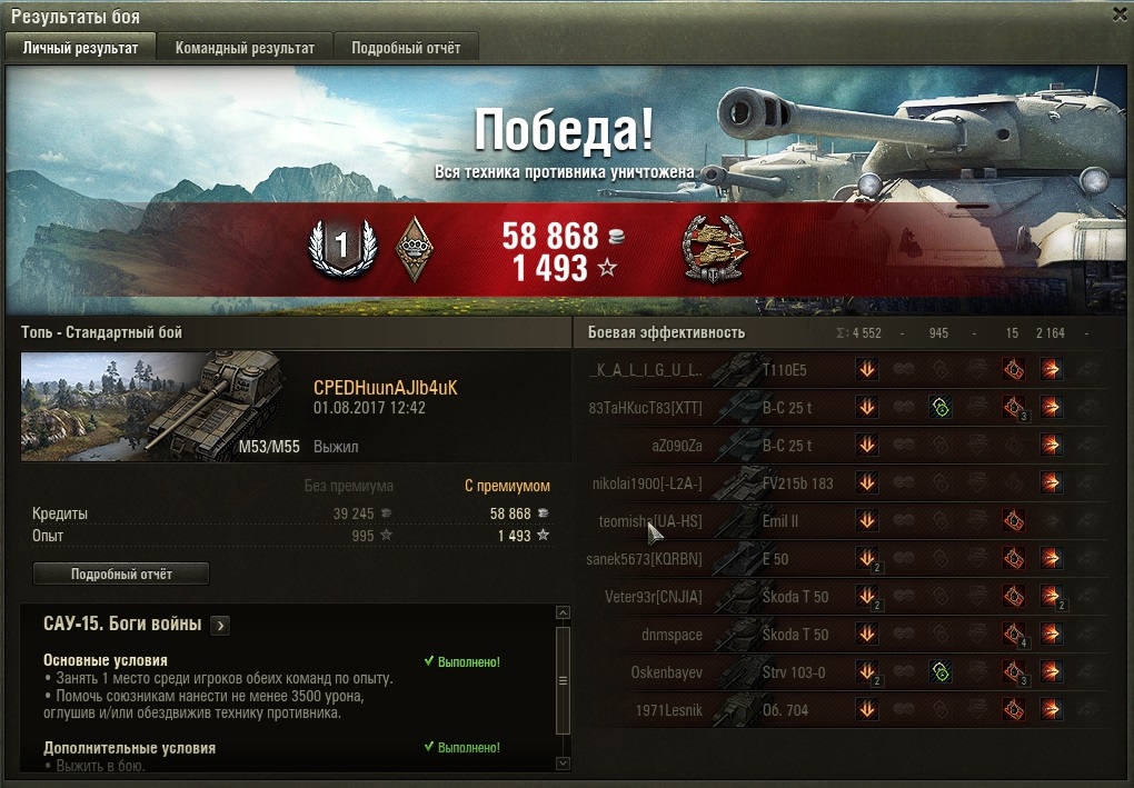 Пытался выполнить "Боги войны" три дня... Наконец всё сошлось, перестали выпадать Промзона и Париж, лт не было и снаряды летели куда надо. Я уж после вчерашних 30ти трёхминутных сливов думал, что до осени не справлюсь... Вроде как только две задачи оказались "долгими" для выполнения, "Дурной глаз" и "Боги войны", боёв 200 наверное отыграл на неделю. Играл на 53\55, на сток-пушке. Сегодня решил, что запасусь терпением и не стану палить во все стороны, в надежде, что кто-то отстреляется по оглушенному. Стрелял только по тем, кого уже начали раздамаживать, так хоть понятно , что они в прицеле у кого-то. В итоге все бои сегодня были 4000+ ассиста... как я понял здесь дело в выборе цели и качественном одиночном выстреле. И терпение... Всем удачи в выполнении!