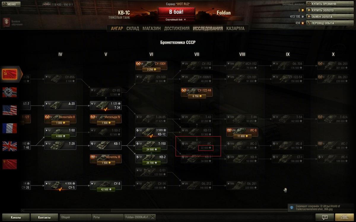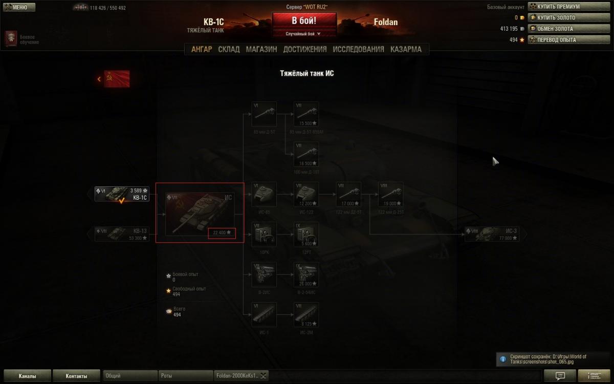 Ошибка с исследованием танка ИС. Когда находишься в исследовании танка КВ-1С, то танк ИС можно исследовать за 49480 опыта. Когда находишься в общей ветке развития советских танков, танк можно исследовать за 22400 опыта, и когда находишься в исследовании танка ИС, то его также можно исследовать за 22400 опыта. На скриншотах понятнее, чем в моём тексте)