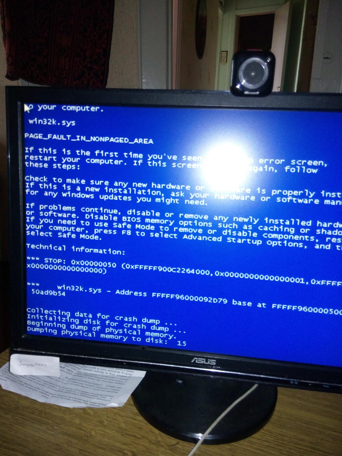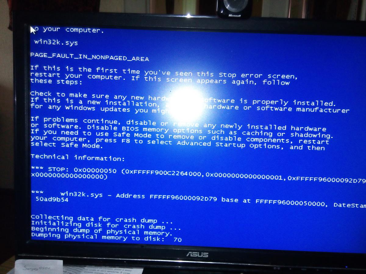 После обновления 9.10 начались проблемы следующего характера: при загрузке боя бегунок загрузки недвижим,через секунд 10-20 идет сброс на синий экран.Характерные надписи : dumping physikal memory to disk потом отсчет до 100 и перезагрузка.Подумал на бэд диска,перекачал лончер,удалил игру,установился на более свободный диск, день играл с модами и без,после выходных опять та же проблема, только надписи connecting data for crash dump... Initalizing disk for crash dump Код ошибки 0x00000050 (0xFFFFF900c2264000, 0x00000000000001, 0xFFFFF96000092D79 Прикрепляю dxdiag и фото экрана DxDiag.txt