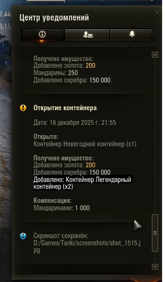 Вечер добрый! Получил МТ-58, решил ещё попытать удачу поймать "огненную птицу", дошло до гаранта, согласно правил компенсации, в качестве замены, предоставляют "легендарный контейнер", но... у меня их почему-то стало 2 штуки, перед этим не было у меня контейнеров, тем более что обычные все открыл. Уважаемые разработчики, это возможно, что за гарант может выпасть 2 "легенды"?! P.S. Реально дали 2 штуки.