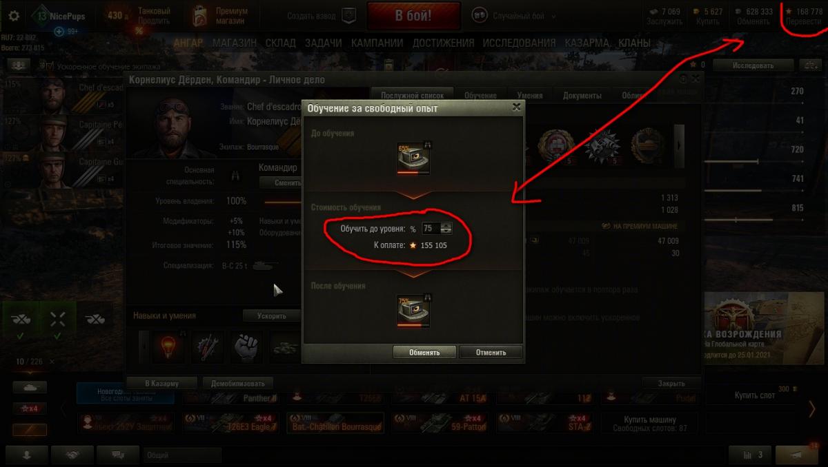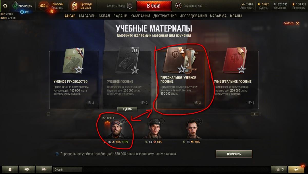 Здравствуйте все! Объясните мне пожалуйста, что не так с этим опытом экипажа... У меня на бураске сидит экипаж от БатЧата, там у командира качается пятый перк, а у остальных четвёртый. И ради интереса, так как 5-ый перк качается уже долго, я решил посмотреть сколько добавит процентов опыта, свободный опыт. У меня на данный момент 168 778 свободного опыта, за 155 105 опыта я могу увеличить уровень прокачки с 65% до 75%. И когда я решил посмотреть сколько добавит "персональное учебное пособие" (оно даёт прибавку к одному члену экипажа 850 000 опыта) то оказалось, что оно тоже прибавляет всего лишь 10% к опыту, то есть 850 000 с ПУП даёт тоже самое 75% с 65%. ВГ извините, но это как понимать? Я приложил скриншоты, посмотрите и объясните пожалуйста. Может я чего-то не понимаю?