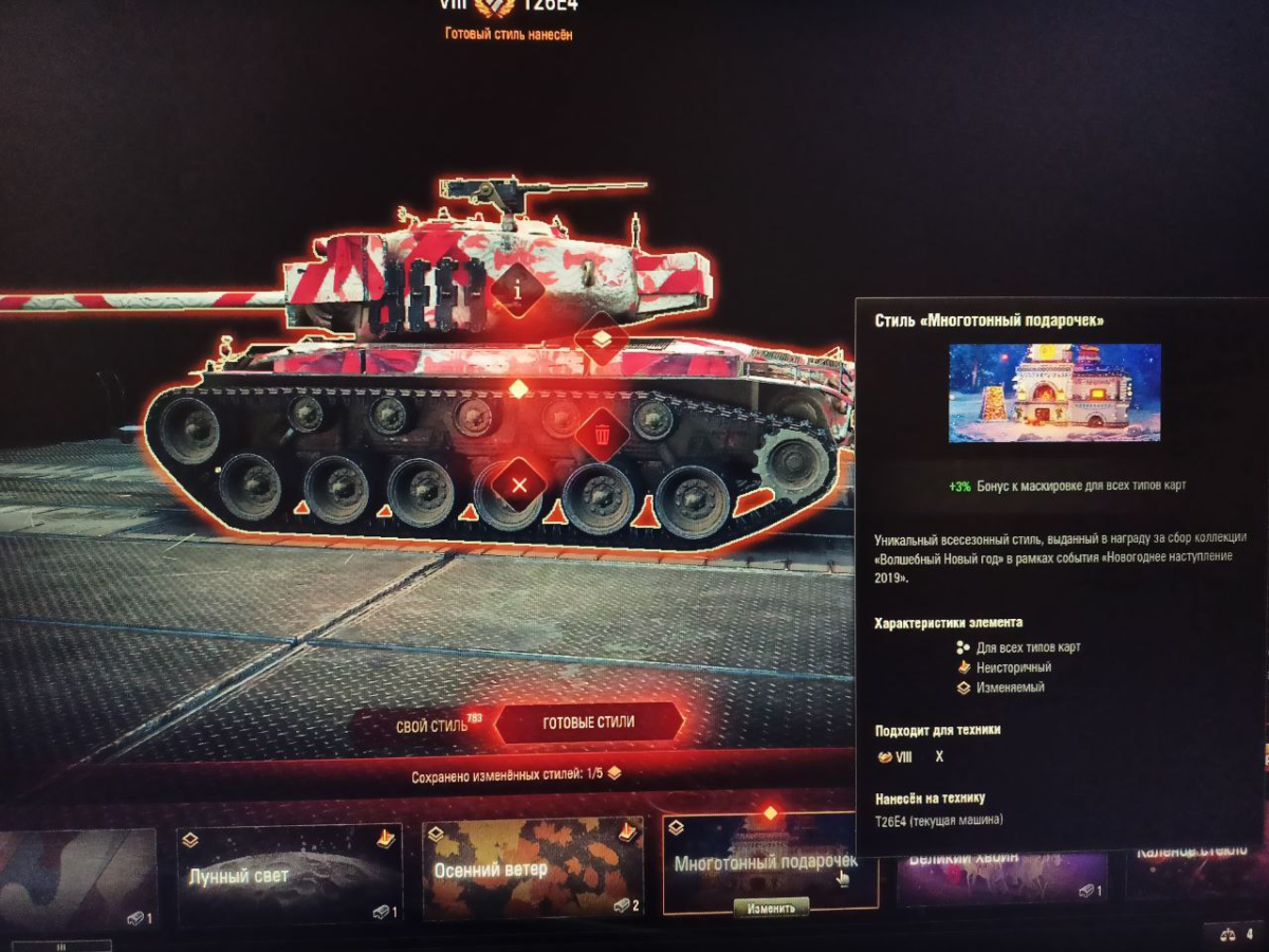 Добрый вечер. Три дня назад снял с танка "О-Но" новогодний стиль (раки на белом фоне). 3й день в стилях его нет. Точного название его не помню. Фотографию нашел в интернете для примера. Как его восстановить?