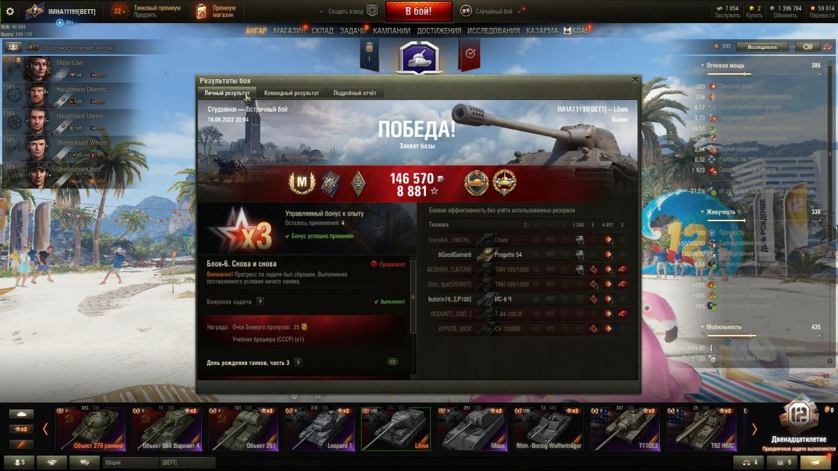 Добрый день, уважаемые разработчики. При выполнении ЛБЗ на танкование (нужно заблокировать Х3 своей прочности) столкнулся с неправильным поведением игры. А именно, почему не засчитывается заблокированный урон, если попадание происходит в гусеницу? Получается удивительная ситуация. По результатам боя я получаю достижение "Стальная стена", заблокировал 9 попаданий от ИС-6 и Lowe (даже если считать средний урон по 300 хп, то должно быть минимум 2700 заблокированного), но при этом в зачет пошло только 1280 заблокированного урона. Раньше всегда считалось попадание в гусеницу за заблокированный урон. Почему сейчас не так? Заранее благодарен за разъяснение или еще лучше за исправление данного бага.
