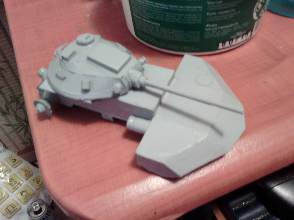 Попробуй вначале грунтовку нанести, а потом красить, а ты чем красил? гуашь? акрил?я еще слышал что наносят шпатлевку тоненьким слоем перед покраской.. но мне кажется этот вариант не прокатит П.С. увидел траки... сколько же у тебя терпения?