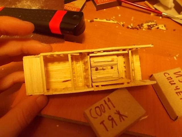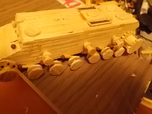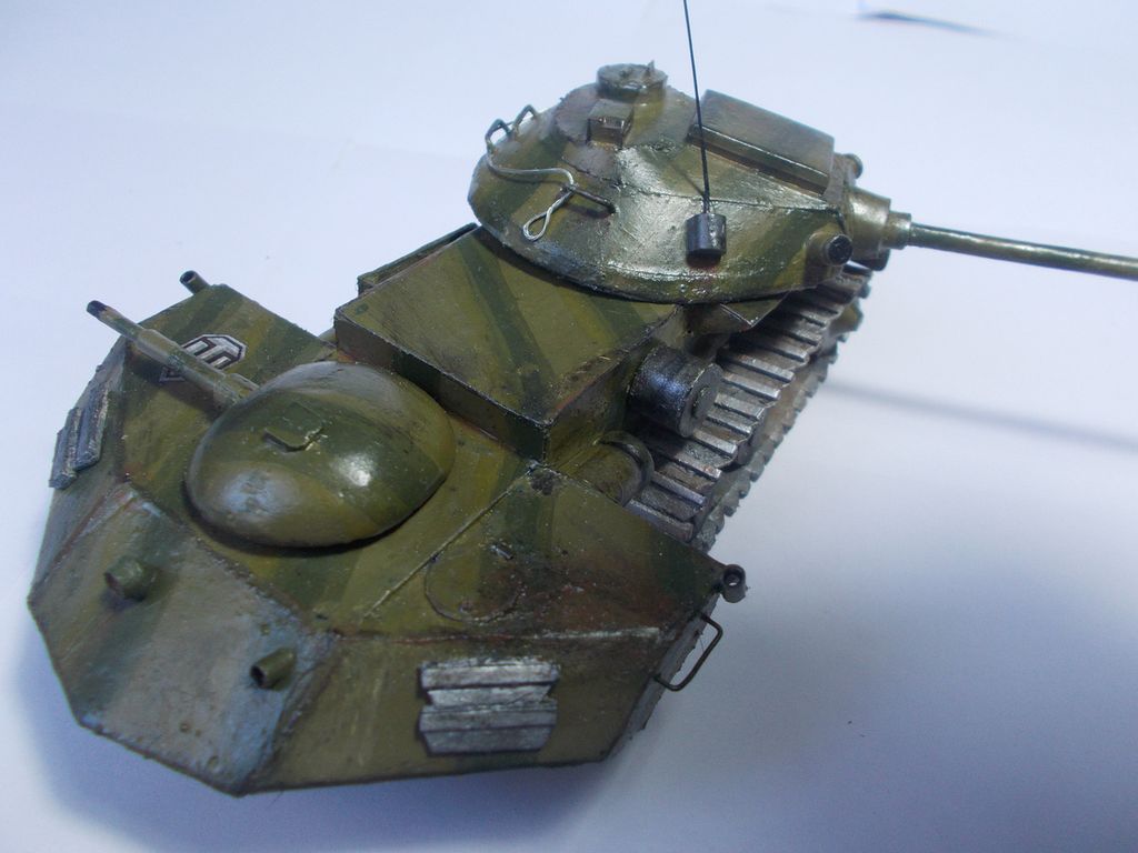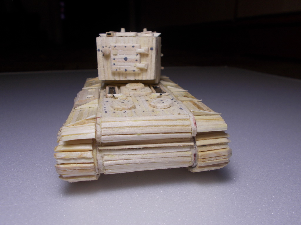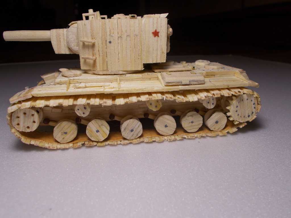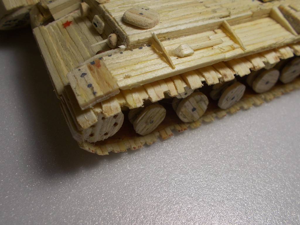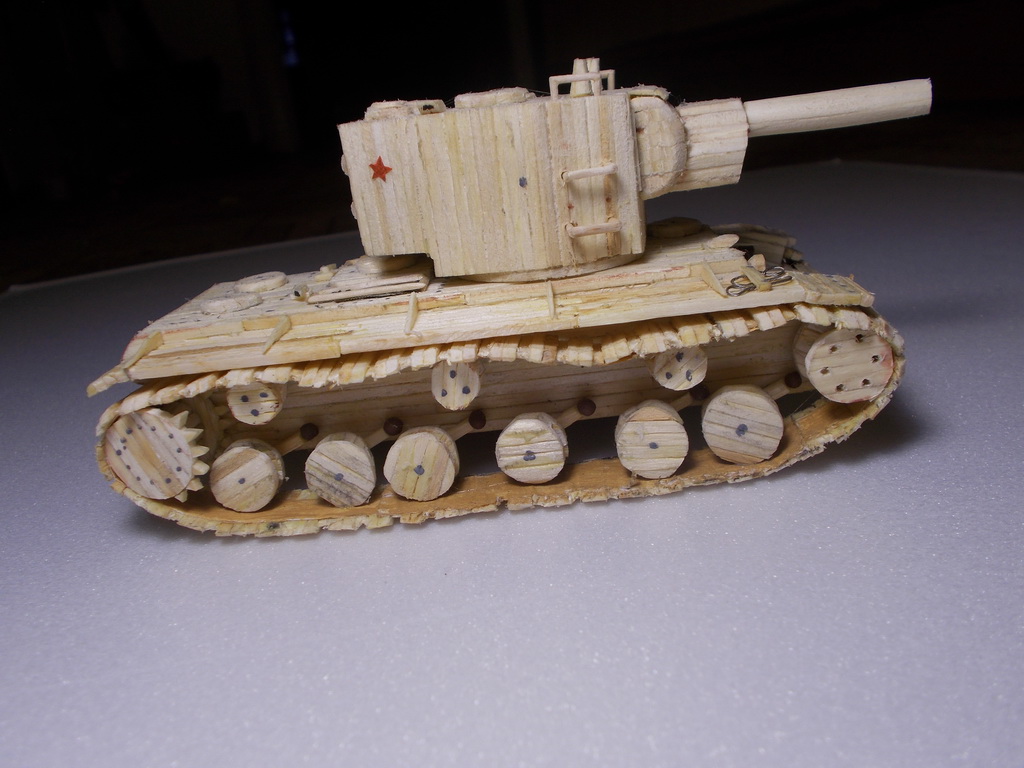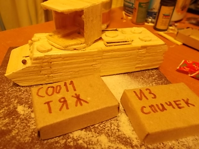 Привет, танкисты! Представляю к вашему вниманию мою первую модель из спичек: http://cdn-frm-eu.wargaming.net/wot/ru/uploads/monthly_11_2015/post-7605631-0-81474700-1448895119_thumb.jpg Доп. фото: Модель делал на конкурс "тяж из спичек", но не успел выложить. Модель полностью выполнена из спичек, в каркасе не использовалось ничего, кроме спичек.(см. процесс создания) Башня крутиться на 360 градусов. Имеется двигательный отсек (на фото видно) Звезды сделаны из красного картона. Процесс создания модели: