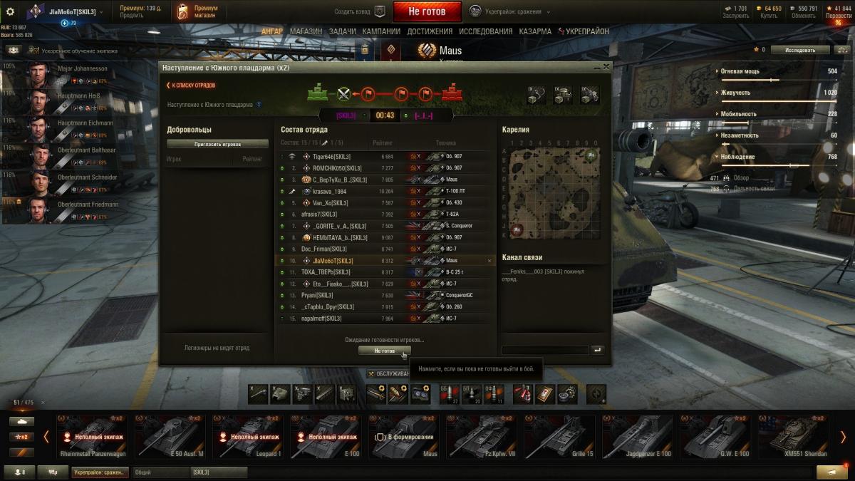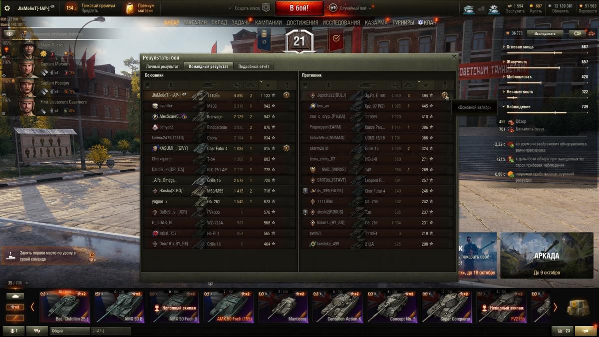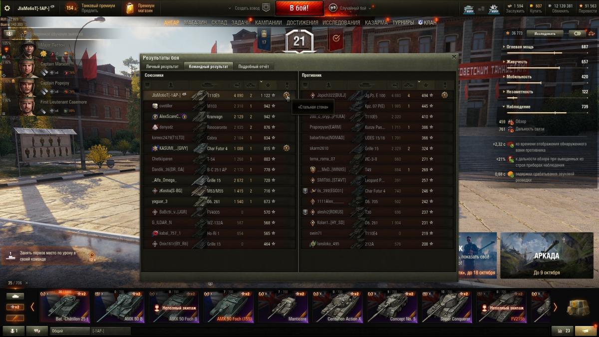 http://cdn-frm-eu.wargaming.net/4.5/style_images/wg/snapback.pngDrLivesey (28 Апр 2017 - 20:45) писал: 464 танка, 117 премов. Еще 15 штук 2-4 уровня прокачиваемых немцев и пять ЛТ 10-х уровней ждут выкупа. На каждый танк качаю свой экипаж с минимум полутора перками, на многих 2.5. На десятках, и всех танках, которые используются нап ГК, или в укрепах, качаю по 3.5-4.5 скила. На всех танках голдовый камуфляж и надлежащее оборудование. В коллекции упущены такие танки как Т-22ср. и Объект 907, а так же невозможность на постоянку поставить в ангар Т-44-100 (Р) Маловато !!! 522 у меня