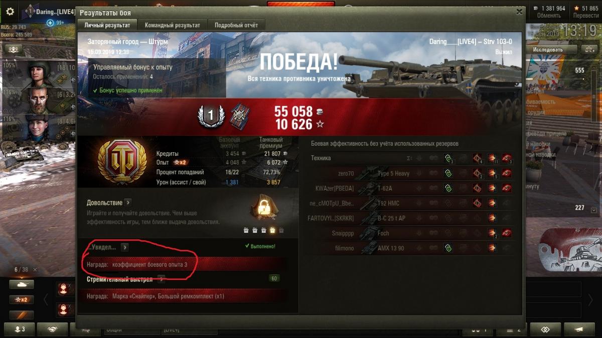 3. http://cdn-frm-eu.wargaming.net/wot/ru/uploads/monthly_09_2019/post-76652954-0-67765000-1568536129_thumb.jpghttp://cdn-frm-eu.wargaming.net/wot/ru/uploads/monthly_09_2019/post-76652954-0-53159400-1568536155_thumb.jpgОбьясните пожалуйста, в каждодневных премзадачах вторая задача -"...увидел..." обещает 3-кратное начисление боевого опыта. на практике же- 2-кратное. это баг, или я что то не понимаю? На скринах подчеркнуто красным.
