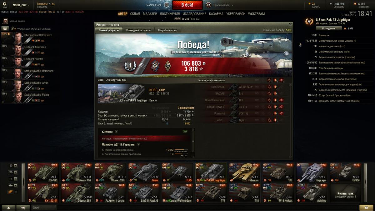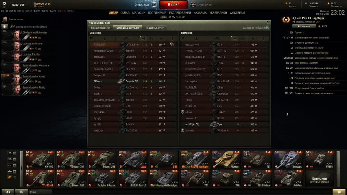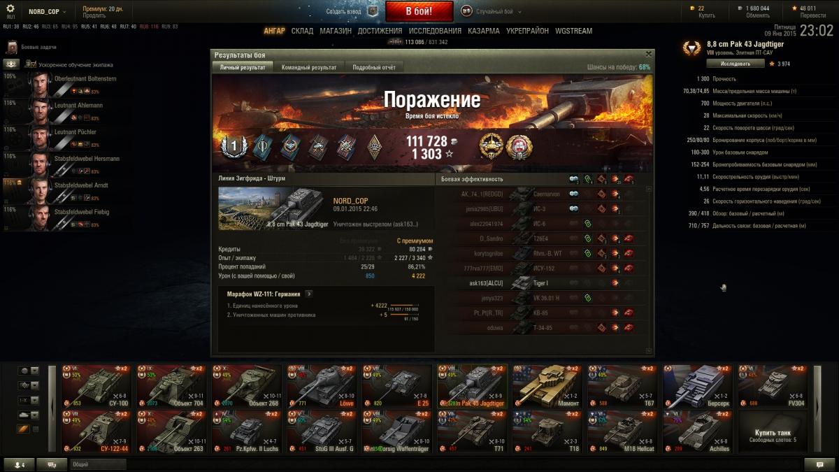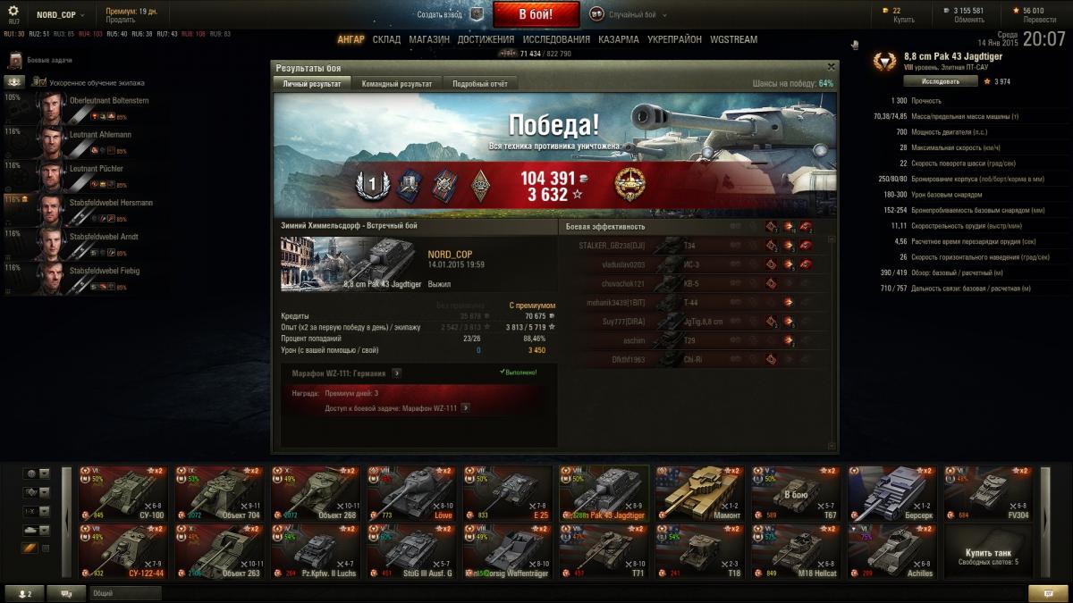 Зря Вы так о 8.8., очень хороший аппарат. У меня есть в ангаре и е25, это совершенно разные машины по стилю игры и задачам. Вот их никогда не продам! Здесь иногда 8.8 сравнивают с Левой, так мое мнение, что он даже в подметки не годится данной пт. ИМХО. Для примера скрины с победой и с проигрышем. С учетом, что я средний игрок и далеко не нагибатор) В кланах не состою, катаюсь для настроения и удовольствия)