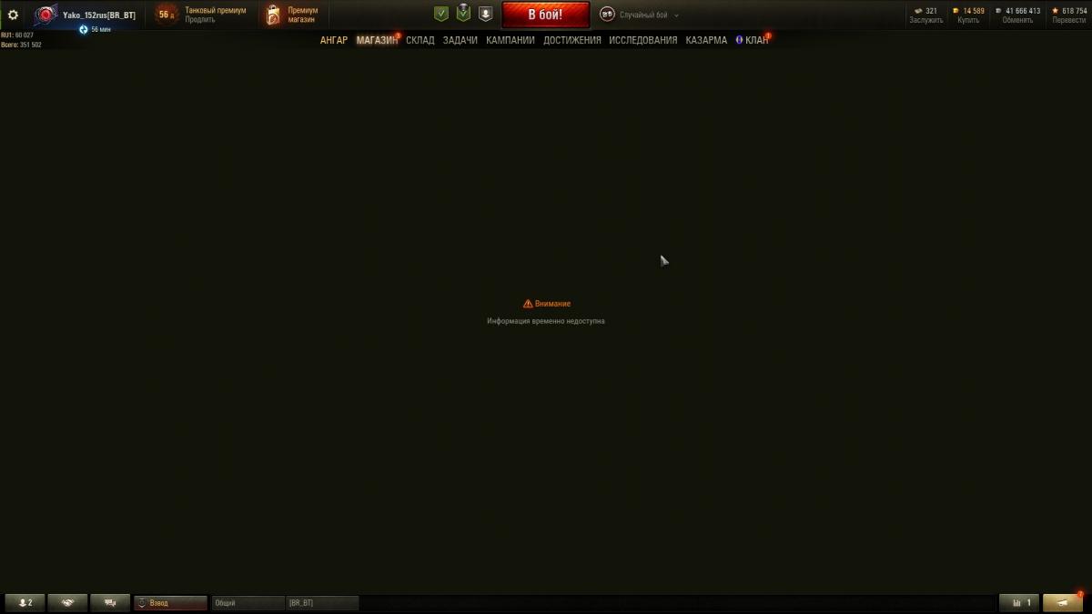 После обновления не открывается вкладка магазин (при попытке открытия пишет в настоящее время операция недоступна). Вкладку клан не открывает, бесконечно крутится шестеренка. Клиент переустанавливал, модов нет, видеодрайвер обновлен, проблема не решается