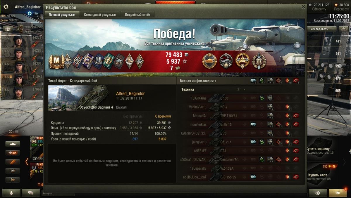 Сыграл пару боёв на нём, взял мастера и больше пока катать и не собираюсь, приоритеты другие. Хотя ща на нём играть явно прикольно, особенно когда сравниваешь показатели с другими танками в послебоевой статистике. http://cdn-frm-eu.wargaming.net/wot/ru/uploads/monthly_02_2018/post-7696557-0-88061000-1518340501_thumb.jpg http://cdn-frm-eu.wargaming.net/wot/ru/uploads/monthly_02_2018/post-7696557-0-97455200-1518340535_thumb.jpg http://cdn-frm-eu.wargaming.net/wot/ru/uploads/monthly_02_2018/post-7696557-0-03022900-1518340563_thumb.jpg
