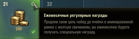прочитал тему. остались вопросы: 1. если отыграл 22 дня, забросил, к примеру, игру на год (всякое бывает), то ежемесячные регулярные награды так и будут начисляться в течении года каждое 1ое число нового месяца или нет? 2. какой максимальный срок, после которого невозможно возобновить прогрессию и она сбросится (сколько максимально может длиться пауза ) ? 3. что значит в описании "вы будете еженедельно получать специальную награду"(см. скрин с подчеркнутым текстом)? в моём понимании описанное в тексте - это значит ты дошёл до еженедельной награды (с жёлтой рамкой) и теперь будешь получать её еженедельно. какое-то запутанное описание, если честно. может стоит подправить, чтобы было понятнее. что за специальная еженедельная награда? непонятно. 4. почему в клиенте еженедельные награды названы "ежемесячными" ? или что-то снова не так понял? ну и еще один вопрос, косвенно касающийся наград: зачем эта мутата с браузером, почему нельзя начислять награды из календаря при входе на сервер в клиенте игры? добавьте уже этот табель-календарь в клиент...