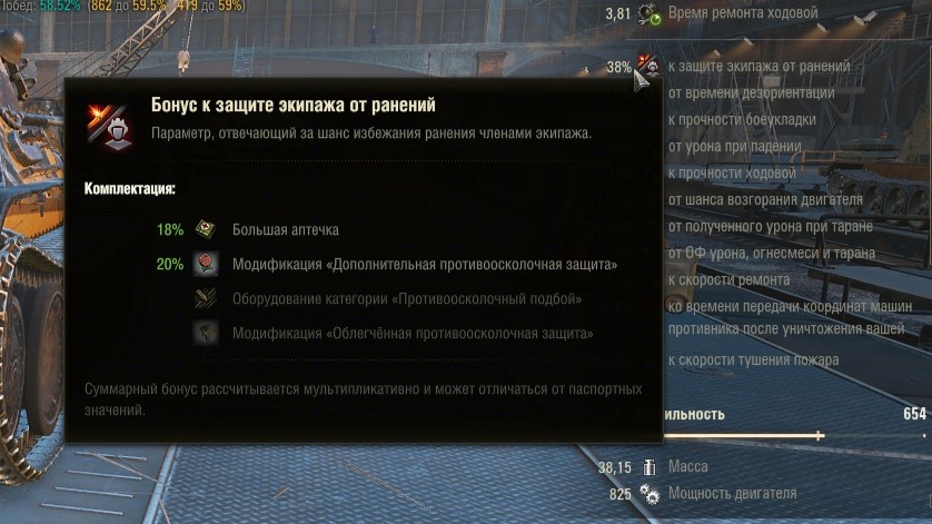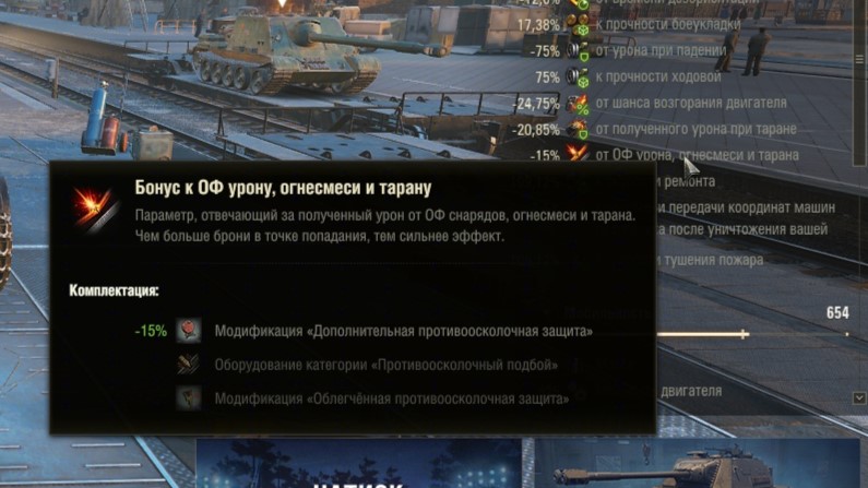 Я вам алгоритм опишу: Эти два пункта немного изменяются. Один называется " от полученного урона при таране", то есть как и было, там появляется -35.85% и при наведении курсора в описании указывается " -20.85% навык "Мастер тарана" -15% модификация "Дополнительная противоосколочная защита". Второй пункт называется "от ОФ урона и огнесмеси" При наведении курсора в описании указывается " -15% модификация "Дополнительная противоосколочная защита" Вам не кажется, что это более понятно и логично?