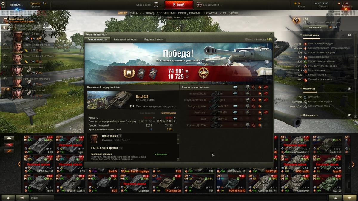 С месяц назад тт12 на т29 выполнил. На Лассвиле без коричневых поехал в ущелье выставил башню и пошло поехало, правда без отличия, но все же. А тт 15 на тапке оформил