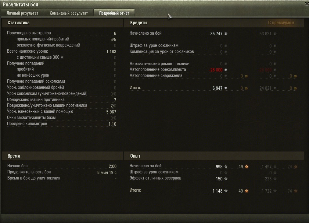 ЛТ15 пройдено с отличием. Если кому интересно статистика: Всего на 15 ЛБЗ откатал 168 боев. За это время выпало 3 Малиновки и 4 Прохоровки/ОД, выполнил 2 раза без отличия и один с отличием. 1. Малиновка, 13 90 - не выполнено. 2. Прохоровка, 13 90 - выполнено без отличия. 3. Прохоровка, ЛТТБ - не выполнено. 4. Прохоровка, 13 90 - не выполнено. 5. Малиновка, 13 90 - не выполнено. 6. Прохоровка, ЛТТБ - выполнено без отличия 7. Малиновка, 13 90 - выполнено с отличием. Причем один раз за один вечер выпало 2 прохоровки и малиновка. По количеству боев, откатанных на 15 ЛБЗ, сравниться может только поджог 2 танков на СТ.