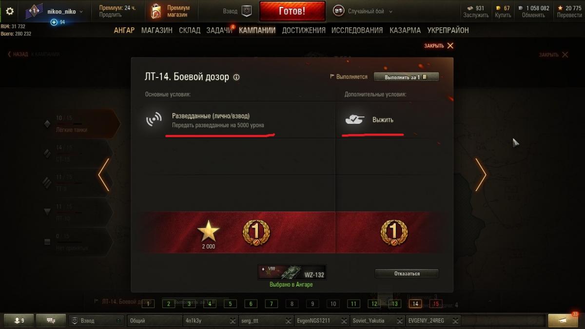 Основные требования к задаче: Дополнительные требования: Передать разведданные на 5000 урона Лично\взвод Выжить Суть темы в чем... Выполнил данную задачу 2 раза и 2 раза задача не засчиталась Клиент пустой, модов нет! Прошу внятного и четкого разъяснения!! 20180823_1928_china-Ch17_WZ131_1_WZ132_36_fishing_bay.wotreplay 20180823_2014_china-Ch17_WZ131_1_WZ132_03_campania_big.wotreplay