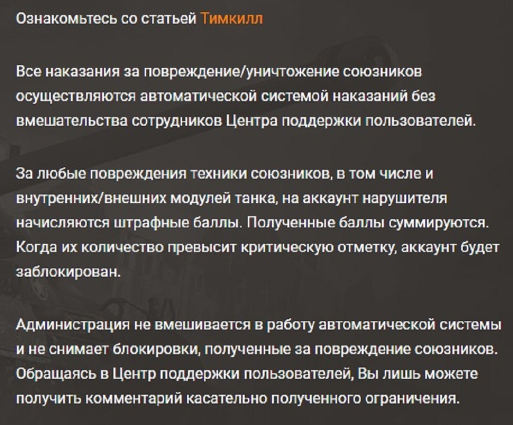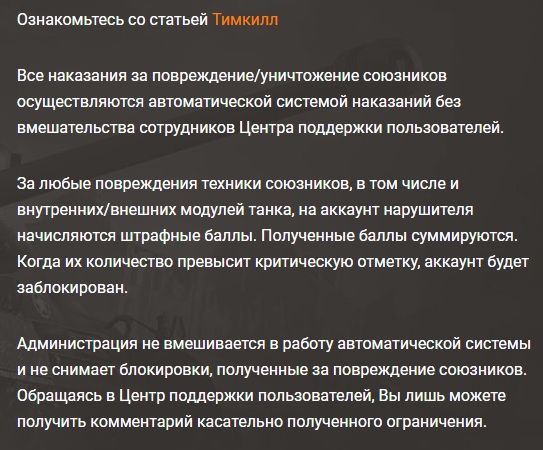 http://cdn-frm-eu.wargaming.net/4.5/style_images/wg/snapback.pngnazar83cm (07 Мар 2019 - 21:34) писал: предложение: удалите из игры дружественный неорудийный урон, в том виде в котором он сейчас существует это просто издевательство, врезался в тебя шальной светляк - плати, таранит тебя союзный неадекват - плати, убился об тебя такой неадекват - голубой акк, вот вся система дружественного урона и наказаний за несколько секунд: создал по данной ситуации жалобу в саппорт, ответ не удивил - "система автоматическая мы не вмешиваемся", так зачем такая система нужна? если она не просто не работает, а работает наоборот, убился об тебя тараном какой то колёсник неадекватный получи голубой акк или бан, и системе всё равно что ты вообще стоял в укрытии и стрелял в это время, и таких ситуаций полно, вопрос открыт - зачем в игре существует неорудийное повреждение союзной техники если система не умеет определять кто нанес урон? http://cdn-frm-eu.wargaming.net/wot/ru/uploads/monthly_03_2019/post-796466-0-64861200-1552124521_thumb.jpg