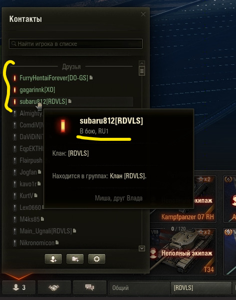 5. Добрый день! Проблема длится уже больше года, с тех пор как в 2024 вернулся после длительного перерыва. Очень часто, когда был онлайн, я периодически (в большую сторону) был не виден своим друзьям в Контактах (которые добавили меня, а я принял их приглашение), что я в сети или уже играю. Кто-то даже обижался - мол, я у тебя в ЧС? Нет, не в ЧС! Если меня приглашали во взвод через правую кнопку мыши на контакте "Создать взвод", а я при этом оффлайн - уведомление мне приходило нормально. Никаких модов, играю на голом клиенте. Игру уже раз переустанавливал. Сравнивали с друзьями игровые настройки, у всех +/- одинаковые. Со вступлением нас двоих в один и тот же клан, проблема видимости моего онлайна исправилась. Теперь товарищ-соклановец видит онлайн я или нет. Но как выяснилось, появилась другая проблема (а может она всегда и была) - с моего аккаунта я вижу, когда друзья в бою, в каком режиме и на каком сервере они играют. (фото 1) Но если я захожу в бой, то для друзей я остаюсь с зеленым сигналом, с пометкой "В сети" и она не меняется и нет № сервера (фото 2 от subaru812). Проверяли это сегодня онлайн через трансляцию. Я захожу в бой, середина боя, конец боя - статус без изменений. Не то, что это сильно критично, но вызывает дискомфорт в плане коммуникации с друзьями.