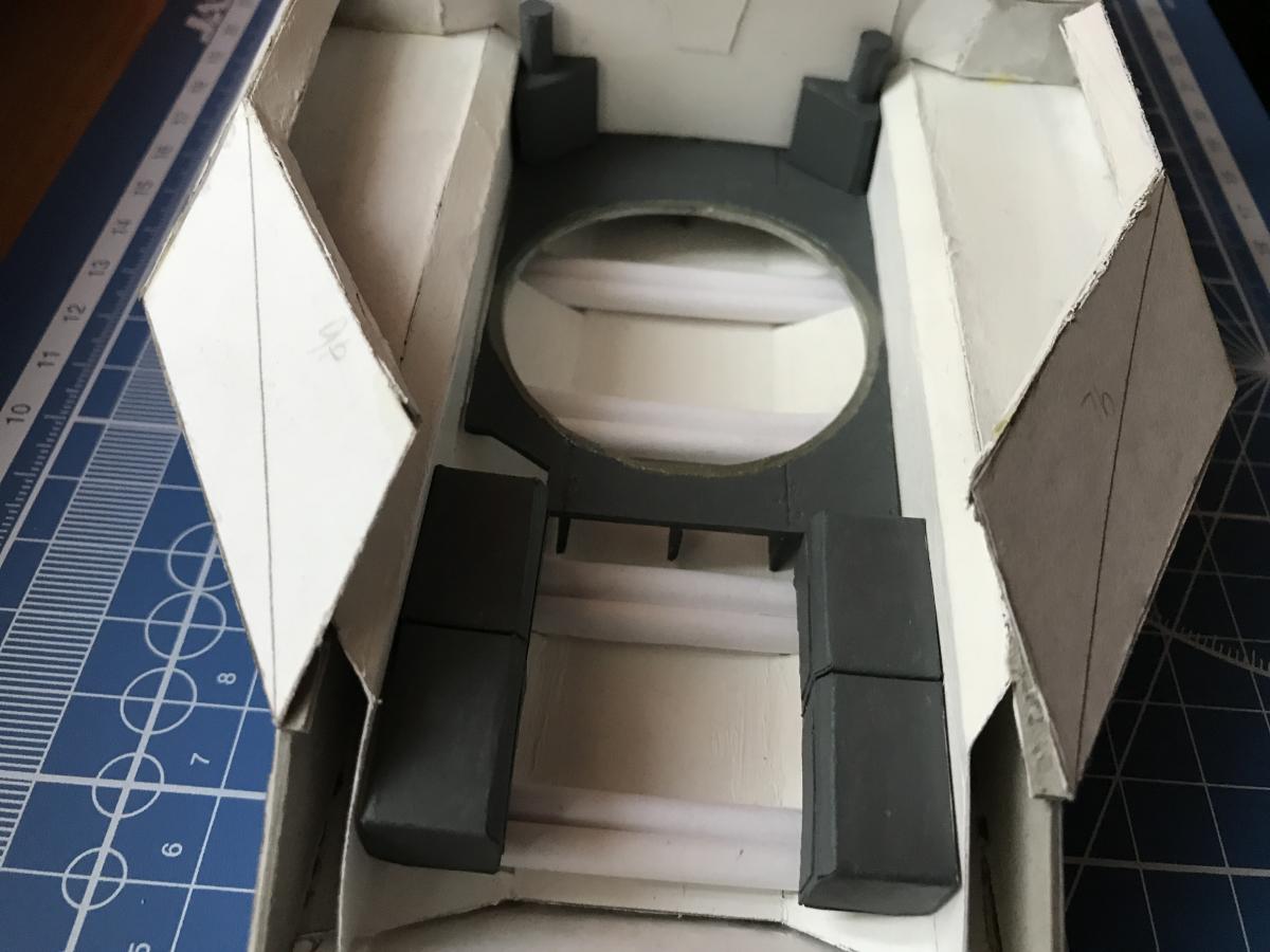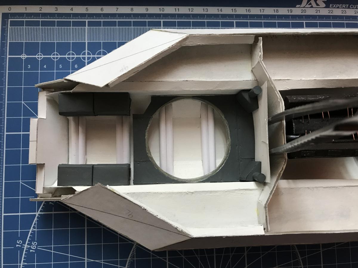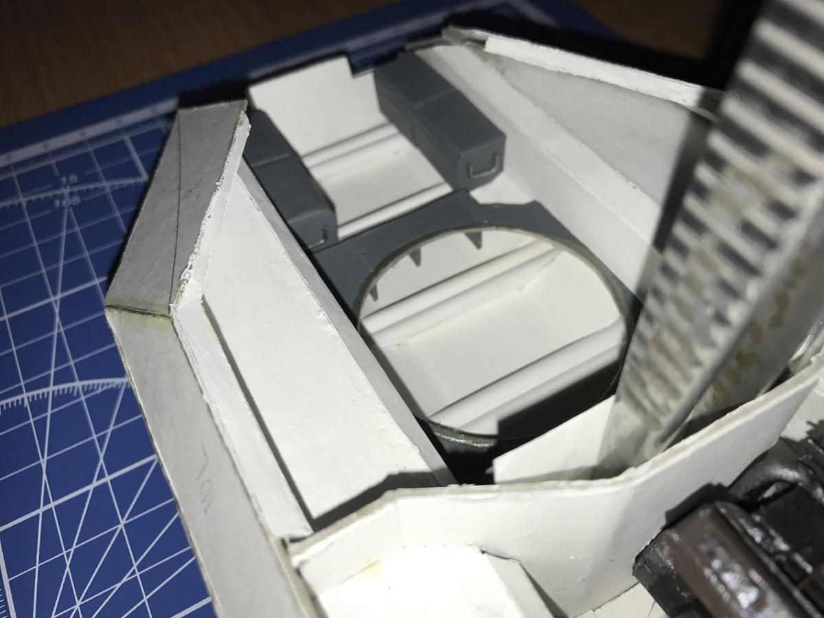 И снова доброго дня, более трех месяцев тема не обновлялась, все это время находился в другом городе, за несколько сотен КМ от модели, посему до последних дней прогресса по сборке не было вовсе, зато несколько набил руку на сборках "бронекоробочек" Но тема не заброшена, сборка продолжается! Итак, несколько дней назад наконец добрался до модели, по итогам трех месяцев простоя ничего не отвалилось и не перекосило, что несказанно радует, поскольку силовая часть по-прежнему не замкнута подбашенным листом... Собственно что вышло за несколько вечеров: собрал и установил торсионы, установил верхнюю часть обшивки боевого отделения, теперь все внутри обшито. Сделал "подиум", на который опирается подвижная часть пола, связанная с башней и (не знаю, как это правильно назвать), сделана, но пока не приклеена обшивка перегородки между боевым и моторно-трансмиссионным отделениями, на ней стоят короба воздушных фильтров, но нет коллекторов (они в процессе), и как выяснилось, ее стоит усилить, пинцет на фото как раз временно подрабатывает усилителем, чтобы деталь держала форму. Добавил короба возле места мехвода, теперь можно полноценно обустраивать место мехвода, чем собственно сейчас и занимаюсь, в процессе сборки кресло, органы управления и приборы, а так же пара огнетушителей, но это уже в следующем обновлении, которое по идее должно стать последним по сборке боевого отделения.. Ну и несколько фото: http://cdn-frm-eu.wargaming.net/wot/ru/uploads/monthly_09_2017/post-7995132-0-76255600-1505834341_thumb.jpg http://cdn-frm-eu.wargaming.net/wot/ru/uploads/monthly_09_2017/post-7995132-0-54353700-1505834384_thumb.jpg http://cdn-frm-eu.wargaming.net/wot/ru/uploads/monthly_09_2017/post-7995132-0-96598100-1505834416_thumb.jpg