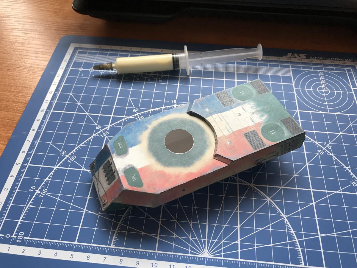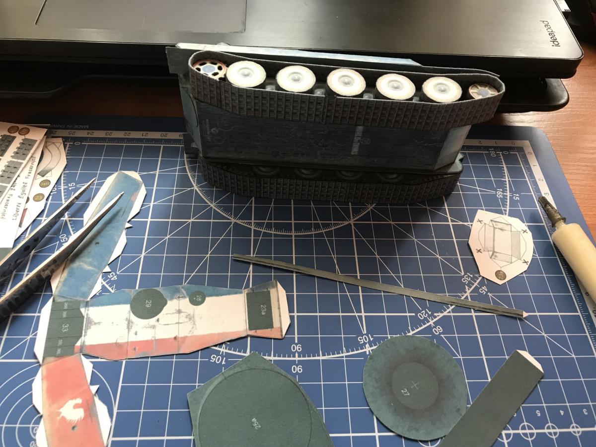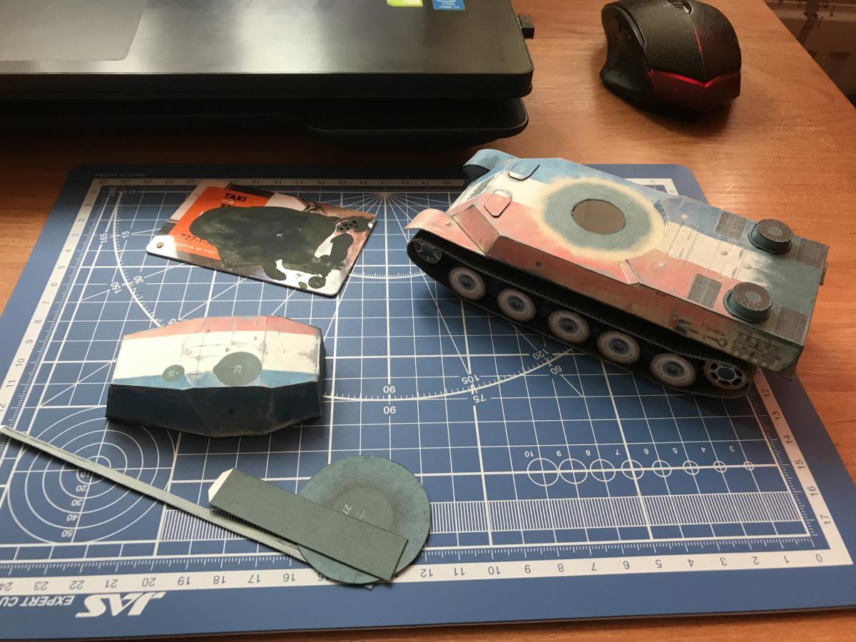Доброго дня! Наконец выпало свободное время, собрал модельку, в целом понравилась, собирается, как обычно, без проблем, кроме тех, что уже звучали относительно надгусенничной полки со смещенной линией сгиба, тоже напоролся, сгибал уже по месту. В виду малого количества свободного времени, в этот раз собирал почти без дополнительных мелочей, ходовая-ванночки. Кстати о ванночках, нашел там занимательный момент: если смотреть на ее изнутри, то видна текстура катков (нижняя половина), и это нормально, но если на нее же смотреть со стороны катков то.... Там тоже видна текстура катков вместо традиционной черной заливки (верхняя половина), т.е. создается впечатление, что катки там в 4 ряда: http://cdn-frm-eu.wargaming.net/wot/ru/uploads/monthly_10_2017/post-7995132-0-15604500-1508145065_thumb.jpg Ну и немного фото: http://cdn-frm-eu.wargaming.net/wot/ru/uploads/monthly_10_2017/post-7995132-0-59606900-1508145014_thumb.jpg http://cdn-frm-eu.wargaming.net/wot/ru/uploads/monthly_10_2017/post-7995132-0-86370700-1508145024_thumb.jpg http://cdn-frm-eu.wargaming.net/wot/ru/uploads/monthly_10_2017/post-7995132-0-53016100-1508145044_thumb.jpg http://cdn-frm-eu.wargaming.net/wot/ru/uploads/monthly_10_2017/post-7995132-0-03695100-1508145075_thumb.jpg http://cdn-frm-eu.wargaming.net/wot/ru/uploads/monthly_10_2017/post-7995132-0-34665000-1508145098_thumb.jpg http://cdn-frm-eu.wargaming.net/wot/ru/uploads/monthly_10_2017/post-7995132-0-92768300-1508145113_thumb.jpg http://cdn-frm-eu.wargaming.net/wot/ru/uploads/monthly_10_2017/post-7995132-0-20590700-1508145138_thumb.jpg http://cdn-frm-eu.wargaming.net/wot/ru/uploads/monthly_10_2017/post-7995132-0-73955900-1508145145_thumb.jpg