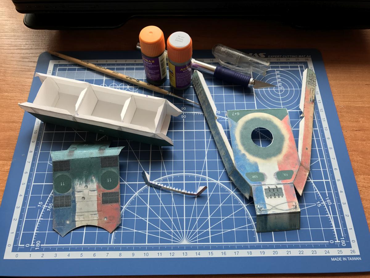 Печатается на обычной офиске, и потом подклеивается под дет. 34, по сути это подклейка с клапанами, для более ровного и удобного соединения изогнутых частей...