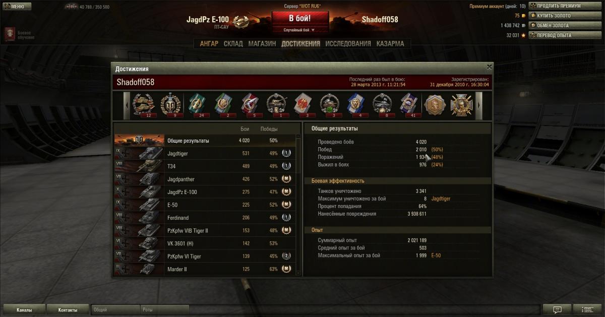 как же надоело слушать нытье про то что ягд пз е 100 не нОгибает и т.д. учитесь играть!!!! взял машину в начале 2013 года да большая не поворотливая, арта любит ее, может 1 из 10 не пробить кого угодно, но у какой техники другие результаты? скажите кто нОгибает? как вы думаете как чувствует себя и что говорит владелец 261 не пробив япесто ббшкой в лоб так же как и вы не пробив светляка, однако у 261 такое бывает чаще. Поиграл на машине где 30-50 боев и сделал самый эпичный бой за все время игры в ВоТ 1 бой: Мастер, медаль Рэдли-Уолтерса, Воин, Снайпер, Стальная стена 9800 дамага и это бой 9-10 лвл из всех убитых в нем всего 1 арта и ЭТО на япесто а не на мардере 2 из кустов и не на квасе 34 каких нить пострелять