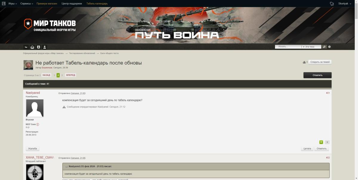 Сегодня игроки создали тему "Не работает Табель-календарь после обновы" в разделе " Баги общего теста", в теме было как минимум 3 страницы, где игроки писали о неработоспособности Календаря. Так вот эту тему просто удалили. Вот и ответ на то, что дальше будет.