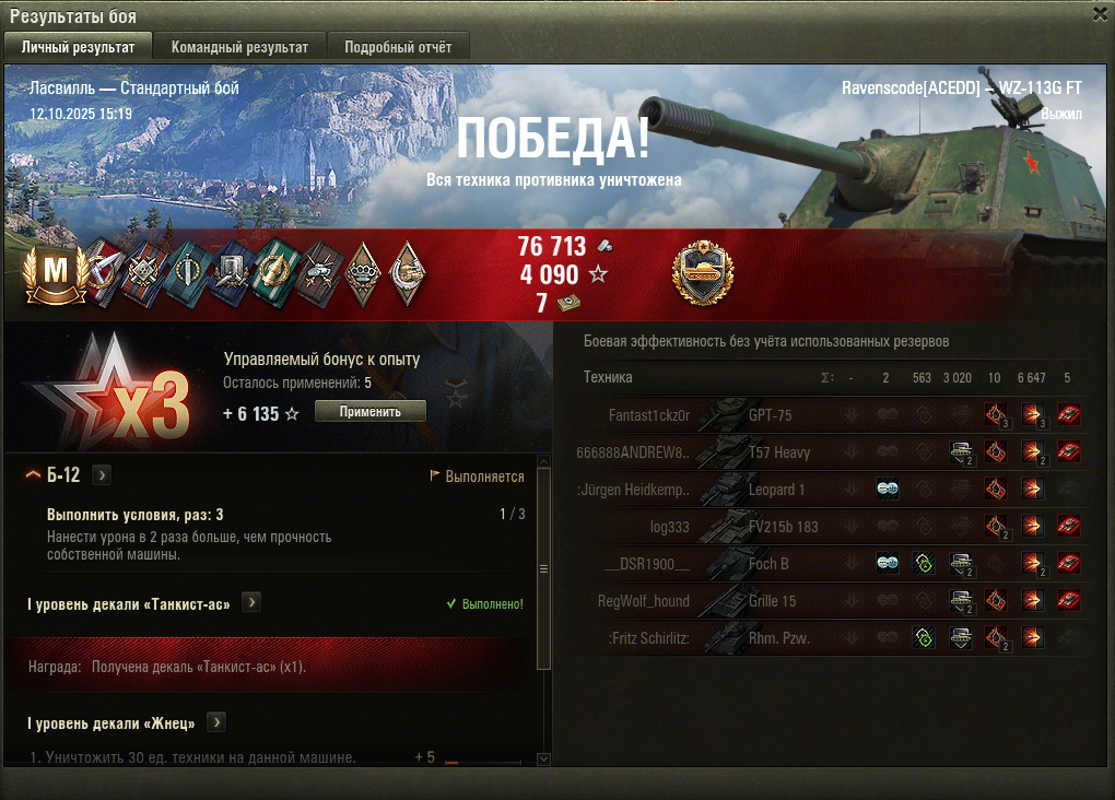 Это главный плюс. Как по мне, пушка комфортная. Да, не леопард, но для своего калибра и альфы дрын точный. Кротам тоже привет передаёт, но редко. Кумулятивы пробивают неплохо, но нужно на "верочку" стрелять, чтоб ни в экран, ни в гусли. Фугасы норм, но лучше юзать в ближнем бою, т.к. скорость полёта низкая. Недавно бурраска на 1100+ обрадовал)) Для моего, достаточно среднего, уровня игры удавалось неоднократно на ней настреливать неплохо (4к+, 5к+). В топе смело катаюсь с тяжами и удивляю вражеских. Приятно продавливать направление во главе банды))) Главная проблема в том, что примерно в 60% боём что-то настрелять очень сложно из-за их скоротечности. Ну и не везет мне на вазике знатно, первые боёв 20 было норм, а потом как отрезало. Сыграть сессию на 50% побед - это праздник. В последние дни 30-40%. Проблема не в том, что винрейт плохой, а в том, что не успеваешь ничего в боях 15:3 и 3:15. Ниже прикреплю жменьку скринов в подтверждение своих слов. Подводя итог скажу, что играть желание на ней у меня есть огромное, давно такого не было. Прям хочется катать и раскрывать данный агрегат. Если будет чуть больше везти с боями, то попробую в 2 отметки. Даже для меня настрел 3к на данном аппарате видится осуществимым. https://forum-mt-prod.lesta.ru/emoticons/Smile-izmena.gif Буду пробовать! Всем удачи и нагибов! https://forum-mt-prod.lesta.ru/emoticons/Smile-izmena.gif https://forum-mt-prod.lesta.ru/monthly_10_2025/post-8173273-0-70626900-1759917889_thumb.jpghttps://forum-mt-prod.lesta.ru/monthly_10_2025/post-8173273-0-23785000-1759917952_thumb.jpghttps://forum-mt-prod.lesta.ru/monthly_10_2025/post-8173273-0-05775800-1759917909_thumb.jpghttps://forum-mt-prod.lesta.ru/monthly_10_2025/post-8173273-0-51073000-1759917922_thumb.jpghttps://forum-mt-prod.lesta.ru/monthly_10_2025/post-8173273-0-90546900-1759917942_thumb.jpghttps://forum-mt-prod.lesta.ru/monthly_10_2025/post-8173273-0-44083200-1759917933_thumb.jpg