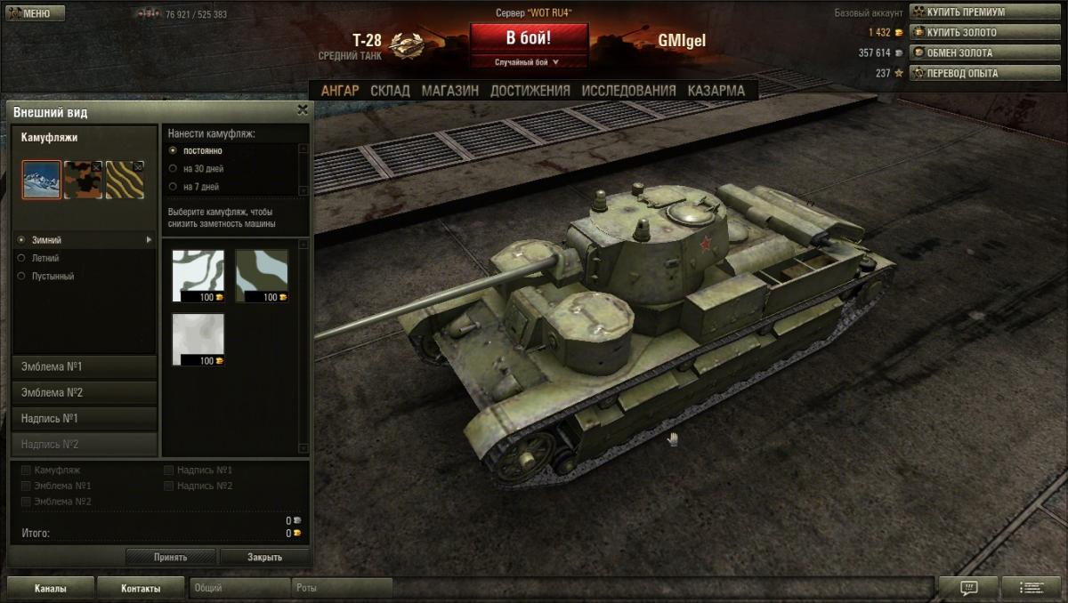 Здрась! Сегодня, покатавшись на Т-28, заметил на зимней карте отсутствие раскраски - пропал камуфляж "Зимний" тип "Весенний"... А вот пустынный и летний - на месте. Все три камуфляжика были куплены за золото и пропасть по сроку давности не могли... Пока пытался написать на саппорт, пришла мысль, что я его не купил... Хотя должен был купить - это у меня засадно-кустовой танчик: маскировка на экипаже, сетка... Как узнать: был ли камуфляж куплен или я забыл его купить? Вроде, помню, что покупал... Но вот с уверенностью не могу сказать...