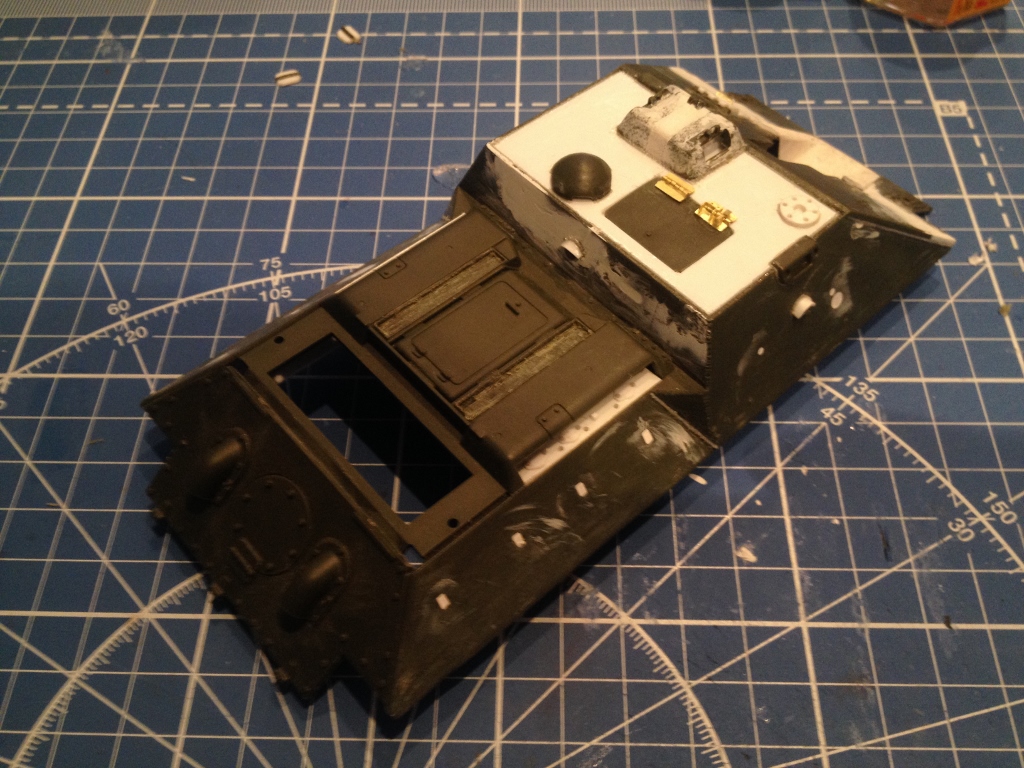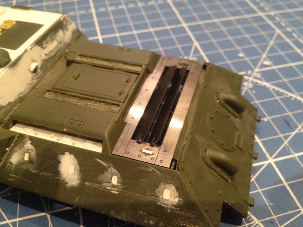 Всем привет!После затянувшегося перекура, стройка продолжается.Установил на место крышу БО и надстройки, добавил сварные швы, козырьки на смотровых окошках. Заделал все дырки ненужные и зашпатлевал заднюю стенку БО. Сделал новый люк мехвода.Случайно наткнулся на травление от Aber для этой модели, в связи с этим срезал самодельные петли люка и заменил травлением. http://cdn-frm-eu.wargaming.net/wot/ru/uploads/monthly_01_2015/post-8244877-0-66507100-1421832193_thumb.jpg http://cdn-frm-eu.wargaming.net/wot/ru/uploads/monthly_01_2015/post-8244877-0-69370500-1421832202_thumb.jpg http://cdn-frm-eu.wargaming.net/wot/ru/uploads/monthly_01_2015/post-8244877-0-96715000-1421832196_thumb.jpg http://cdn-frm-eu.wargaming.net/wot/ru/uploads/monthly_01_2015/post-8244877-0-39182300-1421832200_thumb.jpg