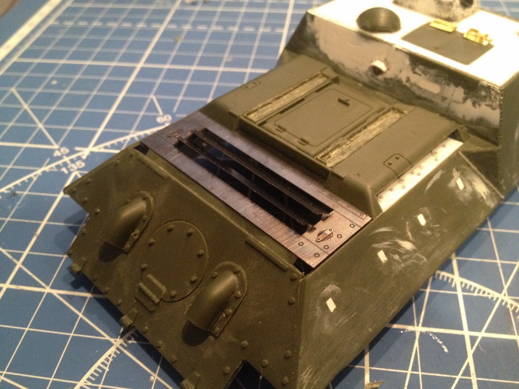 Установил на место ВЛД, сделал имитацию литой брони, крышу рубки, срезал полки. http://cdn-frm-eu.wargaming.net/wot/ru/uploads/monthly_08_2014/post-8247746-0-92410000-1408362552_thumb.jpg http://cdn-frm-eu.wargaming.net/wot/ru/uploads/monthly_08_2014/post-8247746-0-90979500-1408362556_thumb.jpg Т.к. решетки все будут травленые и внутреннсоти будут на виду, решил сделать бронекрышки горловин. http://cdn-frm-eu.wargaming.net/wot/ru/uploads/monthly_08_2014/post-8247746-0-61221200-1408362565_thumb.jpg