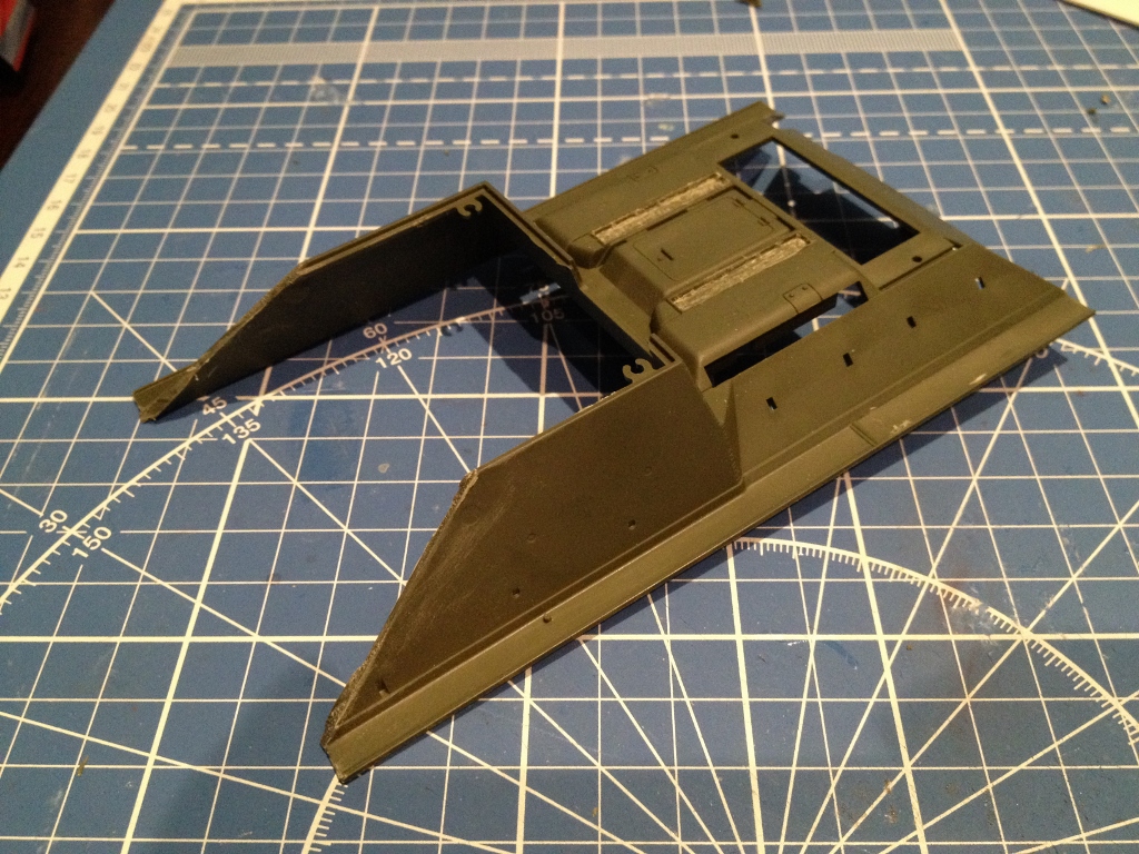Отрезал балку с крыльями, срезал все ненужные скобки. Поменял срез на боковых бронелистах под нужный угол наклона ВЛД. http://cdn-frm-eu.wargaming.net/wot/ru/uploads/monthly_08_2014/post-8247746-0-70166900-1408362213_thumb.jpg Изменив угол наклона, изменилась и длина самой ВЛД. Пару часов повыбирав оптимальное место под разрез, решил делать так (внизу лежит шаблон из бумаги на который буду ориентироваться): http://cdn-frm-eu.wargaming.net/wot/ru/uploads/monthly_08_2014/post-8247746-0-75258800-1408362199_thumb.jpg Вот столько не хватает и выпирает... http://cdn-frm-eu.wargaming.net/wot/ru/uploads/monthly_08_2014/post-8247746-0-98152700-1408362209_thumb.jpg монтаж поддержки с обратной стороны http://cdn-frm-eu.wargaming.net/wot/ru/uploads/monthly_08_2014/post-8247746-0-09439100-1408362225_thumb.jpg стыковка http://cdn-frm-eu.wargaming.net/wot/ru/uploads/monthly_08_2014/post-8247746-0-69297700-1408362235_thumb.jpg добавленные элементы http://cdn-frm-eu.wargaming.net/wot/ru/uploads/monthly_08_2014/post-8247746-0-12220400-1408362242_thumb.jpg пока все это дело сохнет, решил поправить бронировку орудия, т.к. из-за измененного угла наклона ВЛД она стала смотреть немного вверх. Для начала отрезал наплывы по бокам http://cdn-frm-eu.wargaming.net/wot/ru/uploads/monthly_08_2014/post-8247746-0-29898700-1408362267_thumb.jpg затем сточил до нужного угла и приклеил все обратно, заодно скруглил углы на бронировке http://cdn-frm-eu.wargaming.net/wot/ru/uploads/monthly_08_2014/post-8247746-0-52217200-1408362278_thumb.jpg Поправил бронировку под маской орудия, сделал крепления пошире и срезал все болты, потом заменю их. Углы получились достаточно острые, но это максимум что можно было сделать малой кровью) http://cdn-frm-eu.wargaming.net/wot/ru/uploads/monthly_08_2014/post-8247746-0-16201900-1408362253_thumb.jpg http://cdn-frm-eu.wargaming.net/wot/ru/uploads/monthly_08_2014/post-8247746-0-47519700-1408362256_thumb.jpg Пока узел в сборе выглядит так: http://cdn-frm-eu.wargaming.net/wot/ru/uploads/monthly_08_2014/post-8247746-0-16074400-1408362283_thumb.jpg