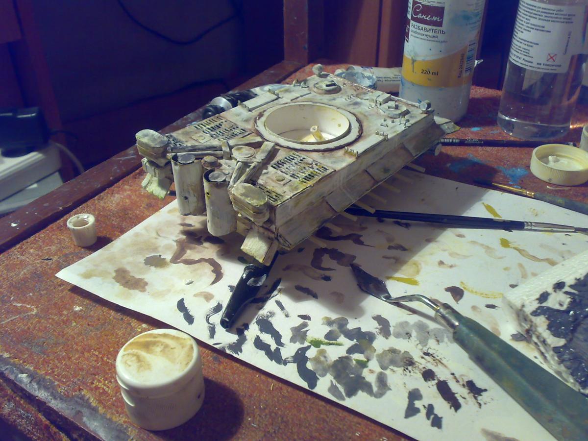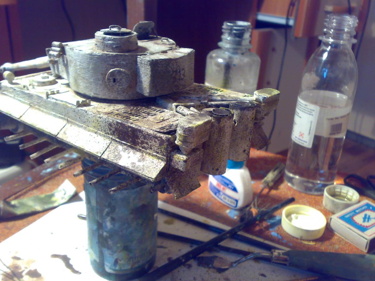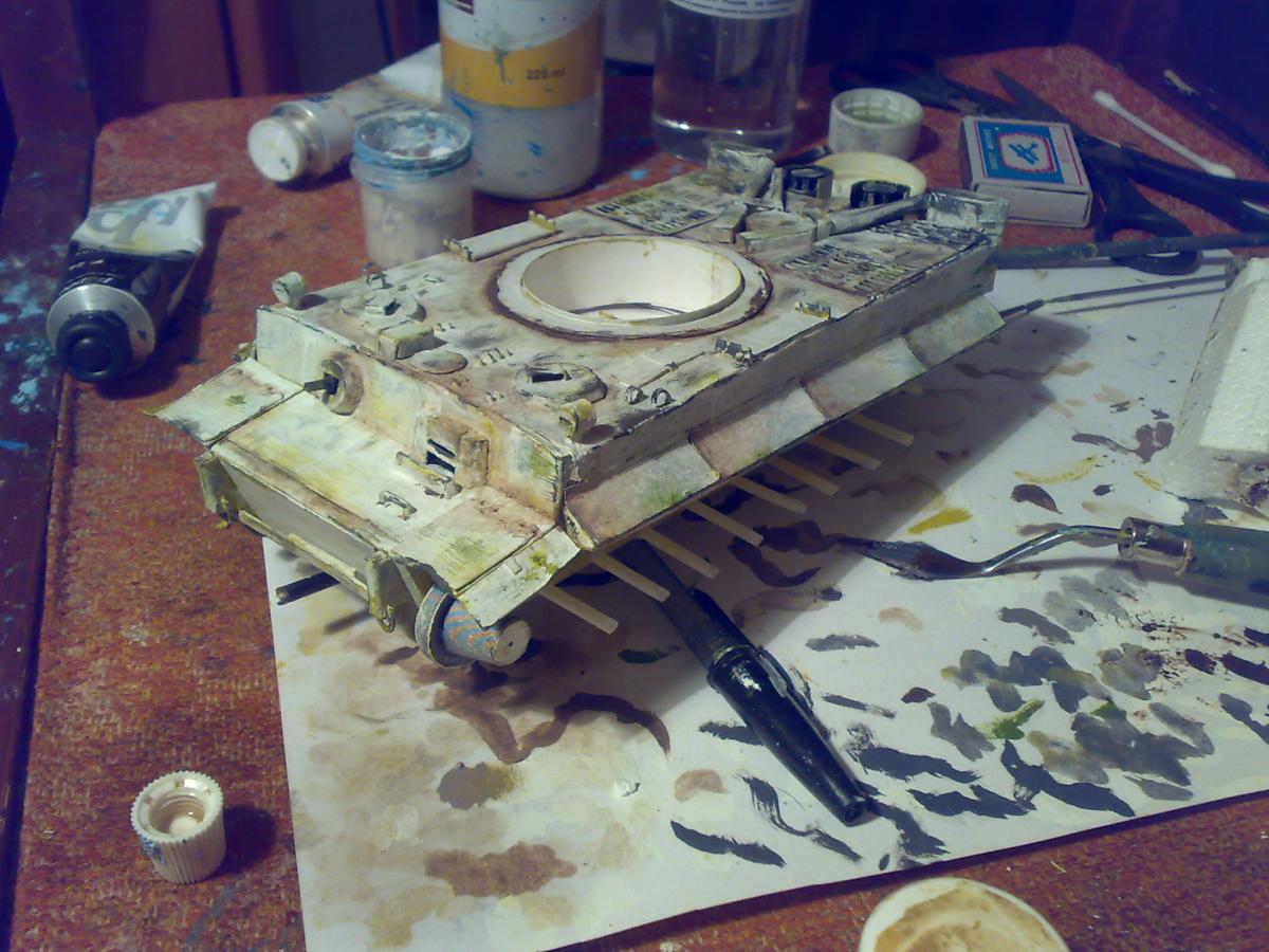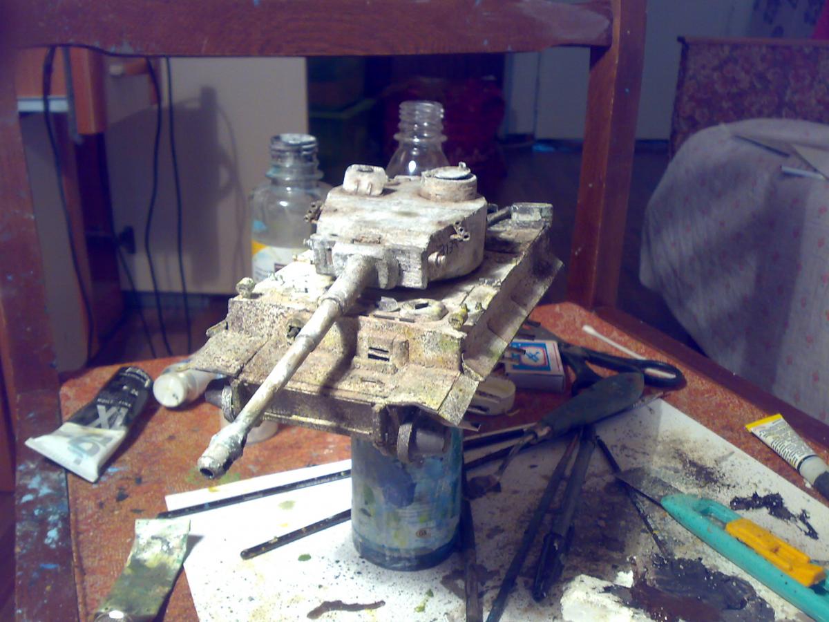Привет-привет! :-) К желаемому конкурсу я, конечно, не успел)) Дел было много. Ну да не беда) Проект все равно нужно довести до конца =) На данный момент практически закончил модель Тигра, осталось немного. А пока принялся за другую работу. http://cdn-frm-eu.wargaming.net/wot/ru/uploads/monthly_01_2015/post-8252959-0-76678300-1421706331_thumb.jpg Так как теперь делаю в свое удовольствие, то от первоначального плана немного отошел. Пока сюжет не раскрою ;-) Но если в двух словах, то идея следующая - в деревню заползает грозный, немецкий "Тигр", где его встречают советские солдаты. Главная задача - показать отвагу и смелость наших воинов. А их я буду делать тоже с нуля (из полимерной глины), и конечно, придется уделить им особое внимание. Время года я выбрал непростое... Нужно будет еще и некоторое количество снега изобразить на диораме http://cdn-frm-eu.wargaming.net/4.3/style_emoticons/wot/Smile_Default.gif Итак, ландшафт, над которым сейчас работаю. Начал с берега и воды. Как оказалось, делать нечто подобное очень долго)) Конечно, львиная доля времени уходит на исправление ошибок, из-за отсутствия опыта и подходящего материала. Очень опечалило то, что в городе нет специализированных магазинов, приходится постоянно искать альтернативы, даже в таких местах, как строительный и зоомагазин)) Вкратце об основных материалах для ландшафта. На подрамнике картонная основа, затем папье-маше, затем гипс. Потом по берегу наложил глину, самодельные пигменты, масляные краски и прочее. Вода - эпоксидка. http://cdn-frm-eu.wargaming.net/wot/ru/uploads/monthly_01_2015/post-8252959-0-66552900-1421706333_thumb.jpghttp://cdn-frm-eu.wargaming.net/wot/ru/uploads/monthly_01_2015/post-8252959-0-08119000-1421706336_thumb.jpghttp://cdn-frm-eu.wargaming.net/wot/ru/uploads/monthly_01_2015/post-8252959-0-41452800-1421706337_thumb.jpghttp://cdn-frm-eu.wargaming.net/wot/ru/uploads/monthly_01_2015/post-8252959-0-87585200-1421706338_thumb.jpghttp://cdn-frm-eu.wargaming.net/wot/ru/uploads/monthly_01_2015/post-8252959-0-78792700-1421706339_thumb.jpghttp://cdn-frm-eu.wargaming.net/wot/ru/uploads/monthly_01_2015/post-8252959-0-97564000-1421706340_thumb.jpgНо в целом, процесс очень интересный и увлекательный! Непередаваемое ощущение, когда из кучи всякой всячины на столе, постепенно "рождается" нечто похожее на то, что ты себе и представлял http://cdn-frm-eu.wargaming.net/4.3/style_emoticons/wot/Smile_Default.gif Сидишь с порезанным пальцем, больно, но радуешься, что "картинка" начинает оживать.