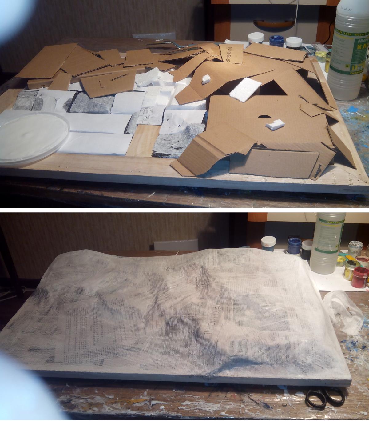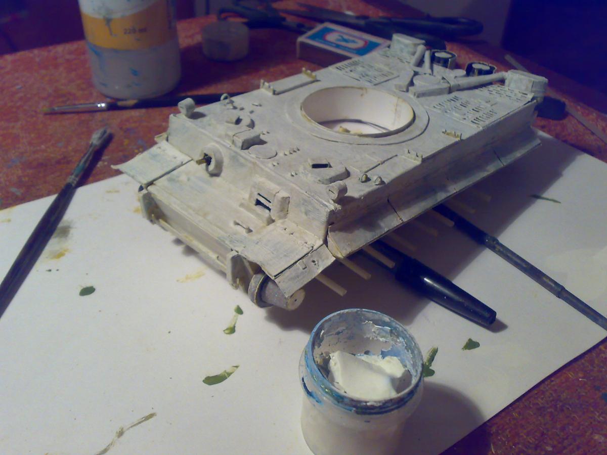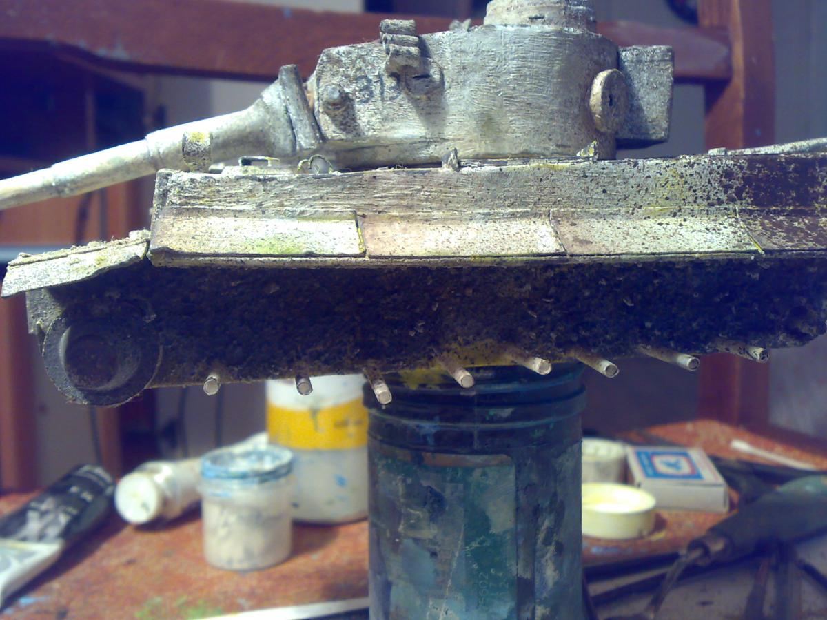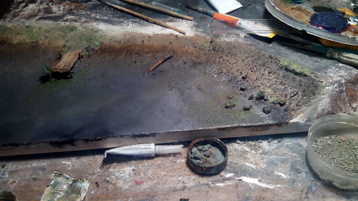 Привет-привет! :-) К желаемому конкурсу я, конечно, не успел)) Дел было много. Ну да не беда) Проект все равно нужно довести до конца =) На данный момент практически закончил модель Тигра, осталось немного. А пока принялся за другую работу. http://cdn-frm-eu.wargaming.net/wot/ru/uploads/monthly_01_2015/post-8252959-0-76678300-1421706331_thumb.jpg Так как теперь делаю в свое удовольствие, то от первоначального плана немного отошел. Пока сюжет не раскрою ;-) Но если в двух словах, то идея следующая - в деревню заползает грозный, немецкий "Тигр", где его встречают советские солдаты. Главная задача - показать отвагу и смелость наших воинов. А их я буду делать тоже с нуля (из полимерной глины), и конечно, придется уделить им особое внимание. Время года я выбрал непростое... Нужно будет еще и некоторое количество снега изобразить на диораме http://cdn-frm-eu.wargaming.net/4.3/style_emoticons/wot/Smile_Default.gif Итак, ландшафт, над которым сейчас работаю. Начал с берега и воды. Как оказалось, делать нечто подобное очень долго)) Конечно, львиная доля времени уходит на исправление ошибок, из-за отсутствия опыта и подходящего материала. Очень опечалило то, что в городе нет специализированных магазинов, приходится постоянно искать альтернативы, даже в таких местах, как строительный и зоомагазин)) Вкратце об основных материалах для ландшафта. На подрамнике картонная основа, затем папье-маше, затем гипс. Потом по берегу наложил глину, самодельные пигменты, масляные краски и прочее. Вода - эпоксидка. http://cdn-frm-eu.wargaming.net/wot/ru/uploads/monthly_01_2015/post-8252959-0-66552900-1421706333_thumb.jpghttp://cdn-frm-eu.wargaming.net/wot/ru/uploads/monthly_01_2015/post-8252959-0-08119000-1421706336_thumb.jpghttp://cdn-frm-eu.wargaming.net/wot/ru/uploads/monthly_01_2015/post-8252959-0-41452800-1421706337_thumb.jpghttp://cdn-frm-eu.wargaming.net/wot/ru/uploads/monthly_01_2015/post-8252959-0-87585200-1421706338_thumb.jpghttp://cdn-frm-eu.wargaming.net/wot/ru/uploads/monthly_01_2015/post-8252959-0-78792700-1421706339_thumb.jpghttp://cdn-frm-eu.wargaming.net/wot/ru/uploads/monthly_01_2015/post-8252959-0-97564000-1421706340_thumb.jpgНо в целом, процесс очень интересный и увлекательный! Непередаваемое ощущение, когда из кучи всякой всячины на столе, постепенно "рождается" нечто похожее на то, что ты себе и представлял http://cdn-frm-eu.wargaming.net/4.3/style_emoticons/wot/Smile_Default.gif Сидишь с порезанным пальцем, больно, но радуешься, что "картинка" начинает оживать.